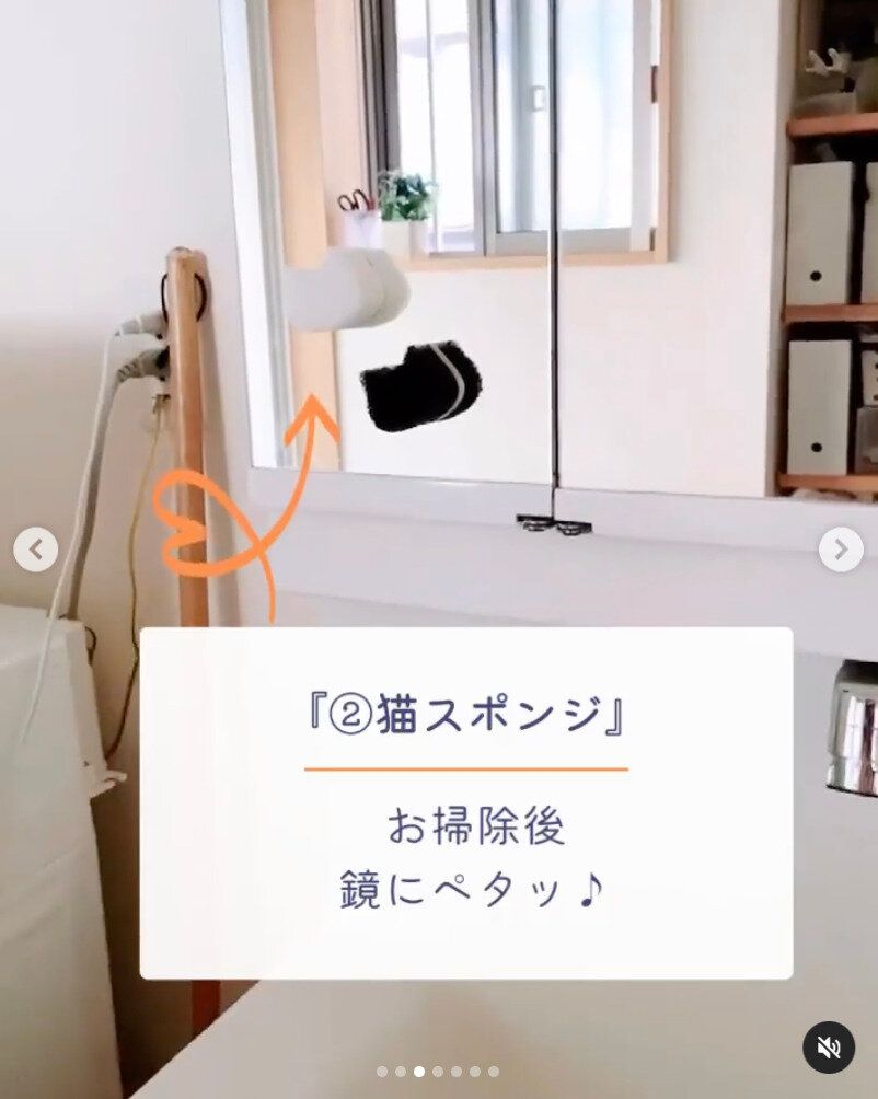 掃除後は鏡にペタッと!ネコの形がかわいいお掃除スポンジ