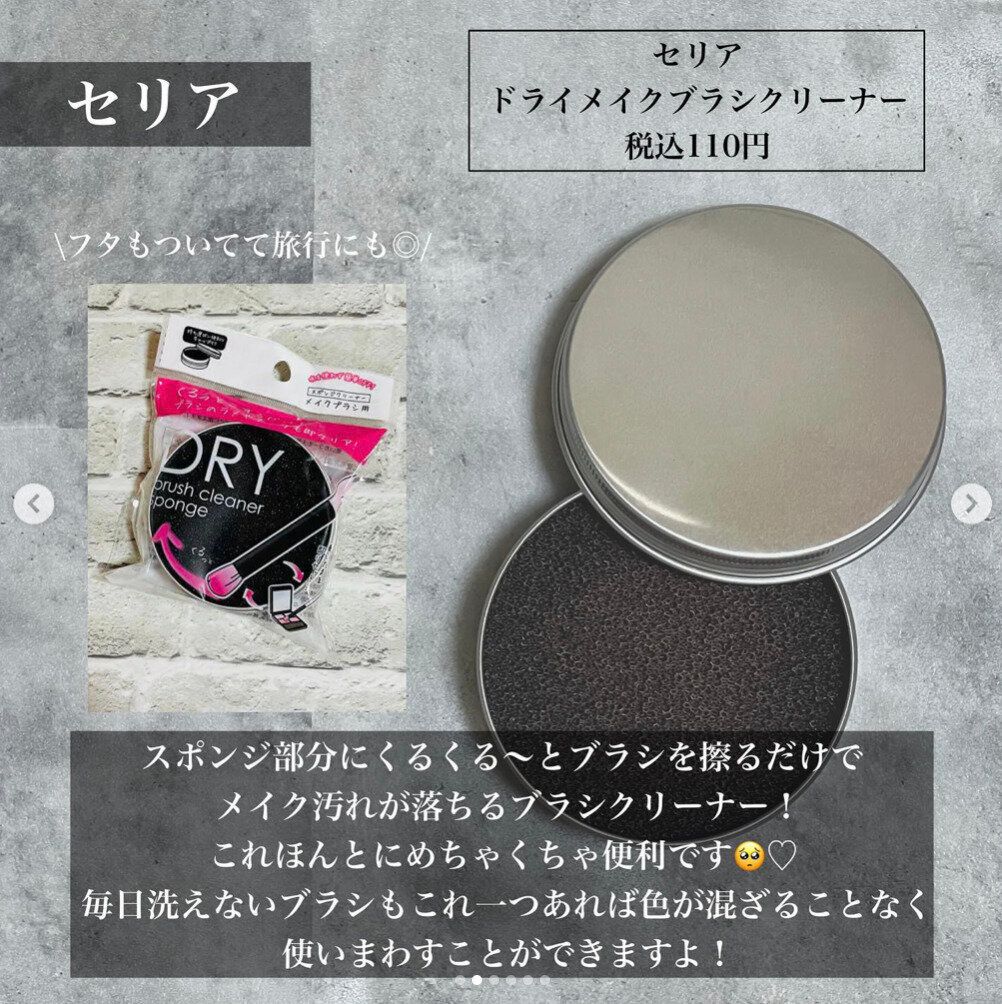 メイクブラシ、どれくらいの頻度で洗ってますか?洗うと乾かすのに時間がかかるし、毛先の痛みも気になったりして、なかなか頻繁には洗えないですよね…。そんな悩みを解消してくれるのが、こちらのドライメイクブラシクリーナーです。汚れたブラシをスポンジ部分でくるくると擦るだけで汚れが落ちます。色を変えたいときにも便利ですね。
