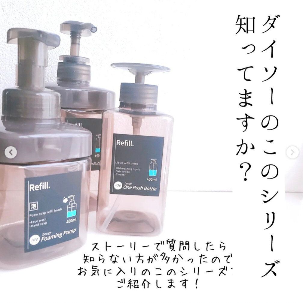 落ち着いた色味とクリアカラーがおしゃれなボトル。カラーはこちらのアンバーのほかに、グレー、グリーン、クリアもあります。こちらのシリーズの特徴は、上のポンプ部分を外すとガバッと大きく詰め替え口が開くこと!広口なので詰め替えが本当に楽なんです。容量も多いので詰め替え回数も減らせる、隠れ家事ラクアイテムです。