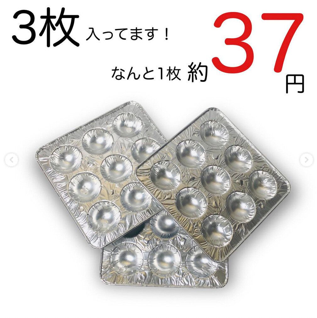 パーティーのほかアウトドアにもおすすめなのが、たこ焼き用のアルミプレートです。110円で3枚入りなので、1枚約37円という安さ!使い捨てタイプなので、後片づけが簡単なのもうれしいですね。たこ焼きのほか、ベビーカステラやシュウマイなどアイデア次第でいろいろ使えそうです。