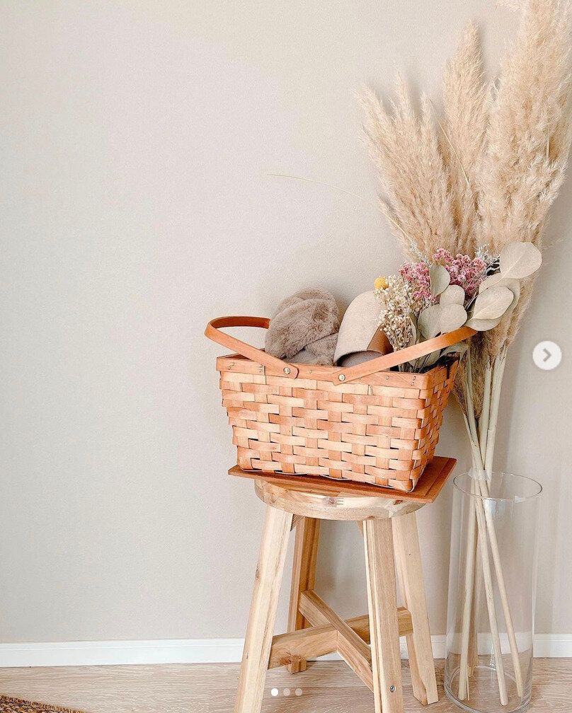 インスタグラマーai_noie_oさんのおしゃれすぎる玄関に置いてあるのは、3COINSの「ウッドチップフタ付きバスケット」。ピクニックなどアウトドアでも活躍するバスケットですが、こんな風にスリッパ入れにしても素敵ですよね。ドライフラワーとも相性抜群です。