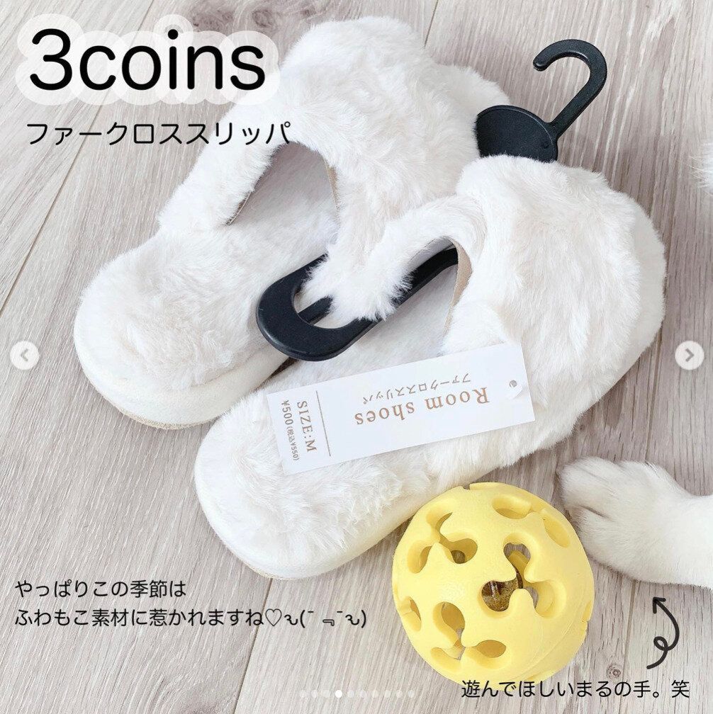 寒くなってくるとふわふわモコモコなアイテムに惹かれますよね。550円で買えるこちらのスリッパは、履き心地がよく、足元をしっかり温めてくれます。カラーはアイボリーとベージュの2色展開。おうちのインテリアに合うカラーを選んでみてくださいね。