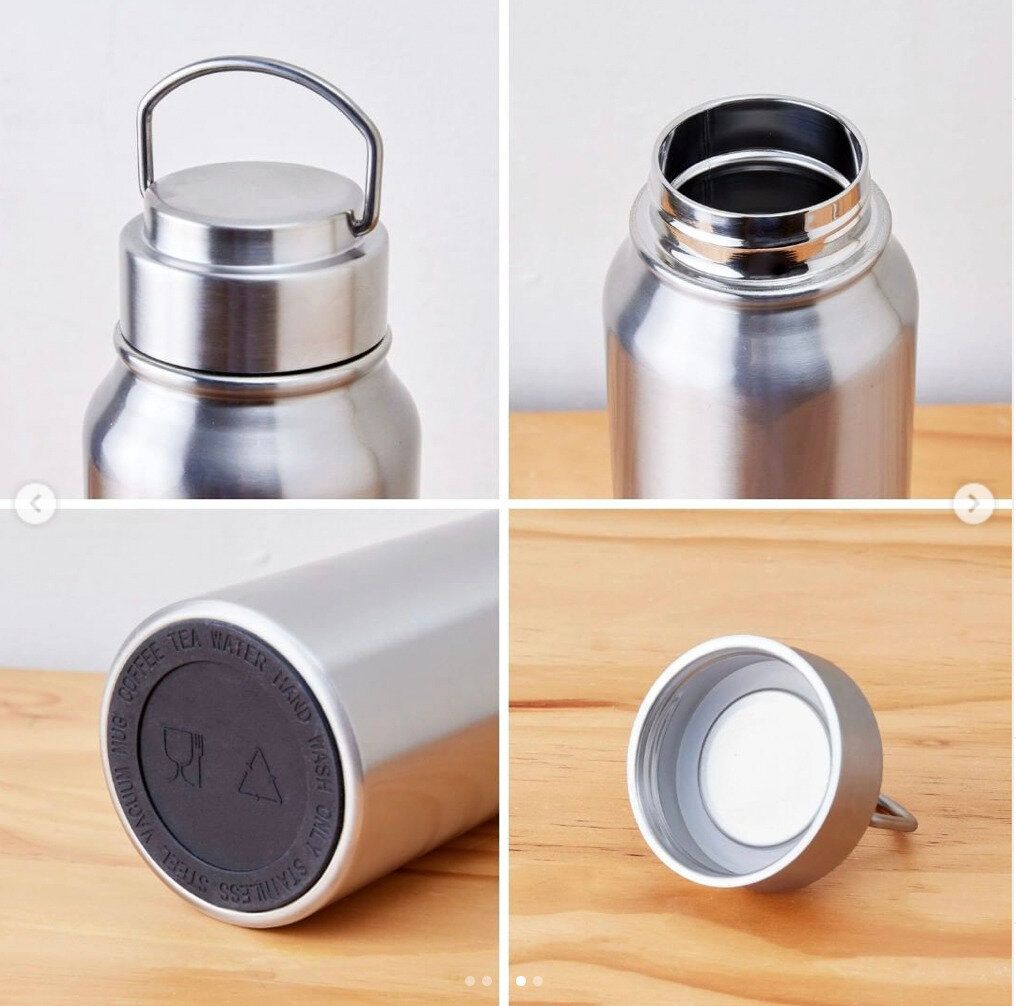 シンプルでスタイリッシュな見た目のステンレスボトル。1,000mlの大容量と高い保冷機能で隠れた人気商品です。中が真空断熱構造になっているのがポイント。結露を防いで長時間の保冷保温効果を保ってくれます。1,650円です。