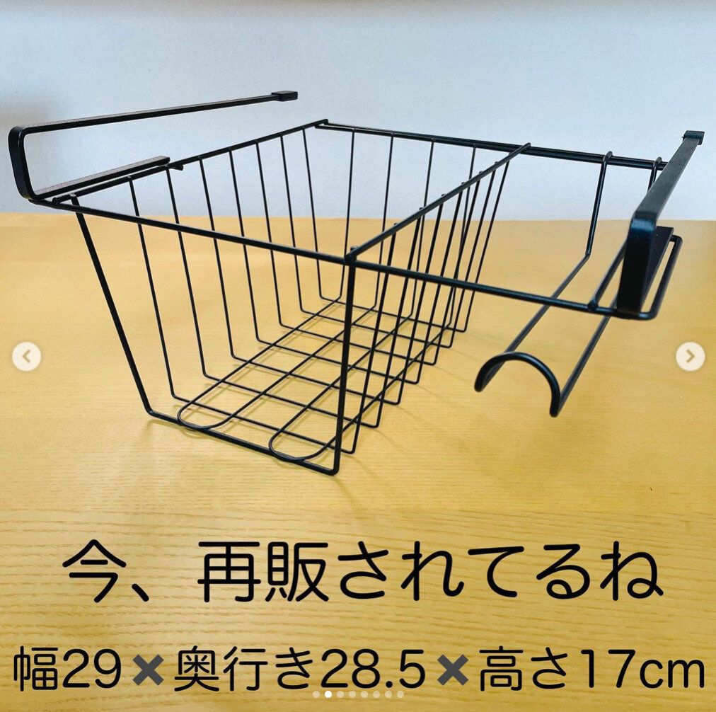 こちらはキッチンで使える吊り下げバスケットです。左側にはラップやアルミホイルなどのキッチン小物、右側のバーの部分にはロール状のキッチンペーパーをセットして使うことができます。スペースの限られたキッチンを有効に使えるのはありがたいですね。