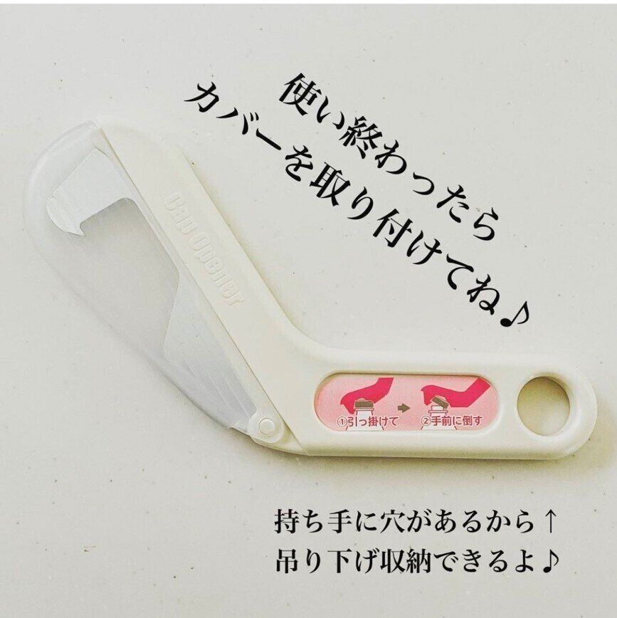 本体に使い方が書いてあるように、キャップ部分に引っかけて手前に倒すだけでカンタンに取れてしまいます。今までの苦労はなんだったんだ!と思えてしまう、常備しておきたいアイテムです。