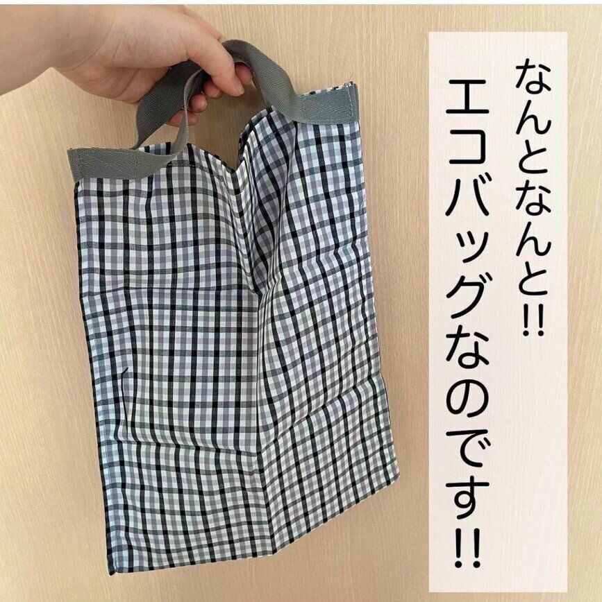 こちらはダイソーの「ハンカチになるエコバック」220円です。見た目はよくあるかわいいチェック柄のハンカチですが、まさかの2way使用!