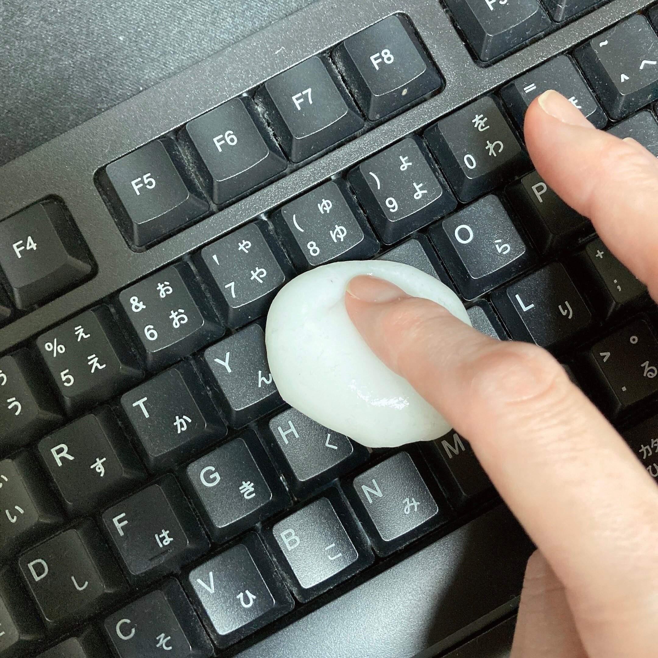 粘着クリーナーをキーボードの上にのせてコロコロと滑らすだけで面白いぐらいにホコリを吸着してくれます。