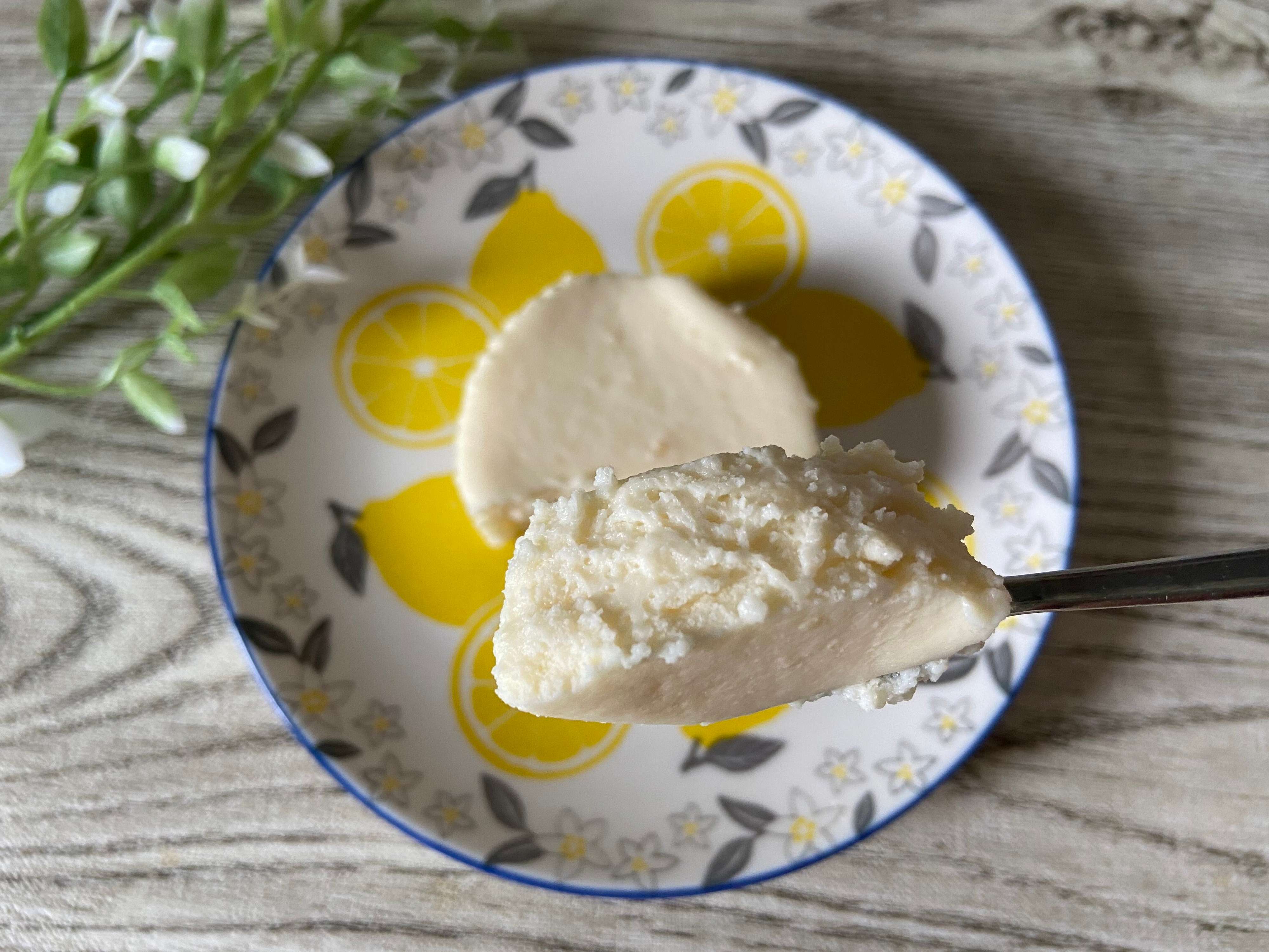 食べてみるとまったりクリーミーな口当たりでチーズのミルキーな風味とレモンの爽やかな香りが口いっぱいに広がります。口の中でふわっととろける軽さもあり、細かくカットされたレモンピールが入っているので食感とほろ苦さがいいアクセントに。レモンの酸味が効いて夏にぴったりのスイーツですね。