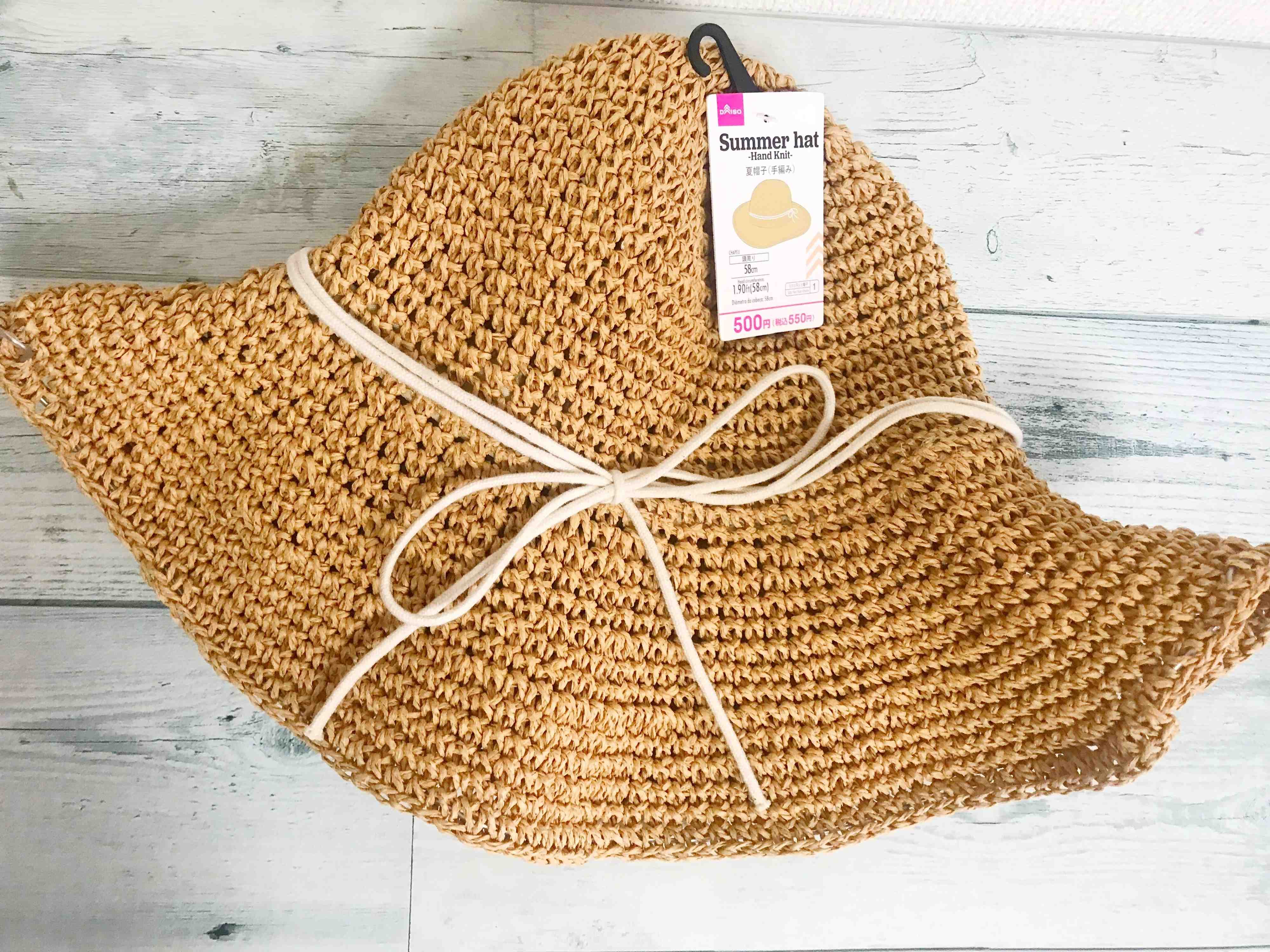 DAISOマニアも驚いた「夏帽子(手編み)」(550円)。