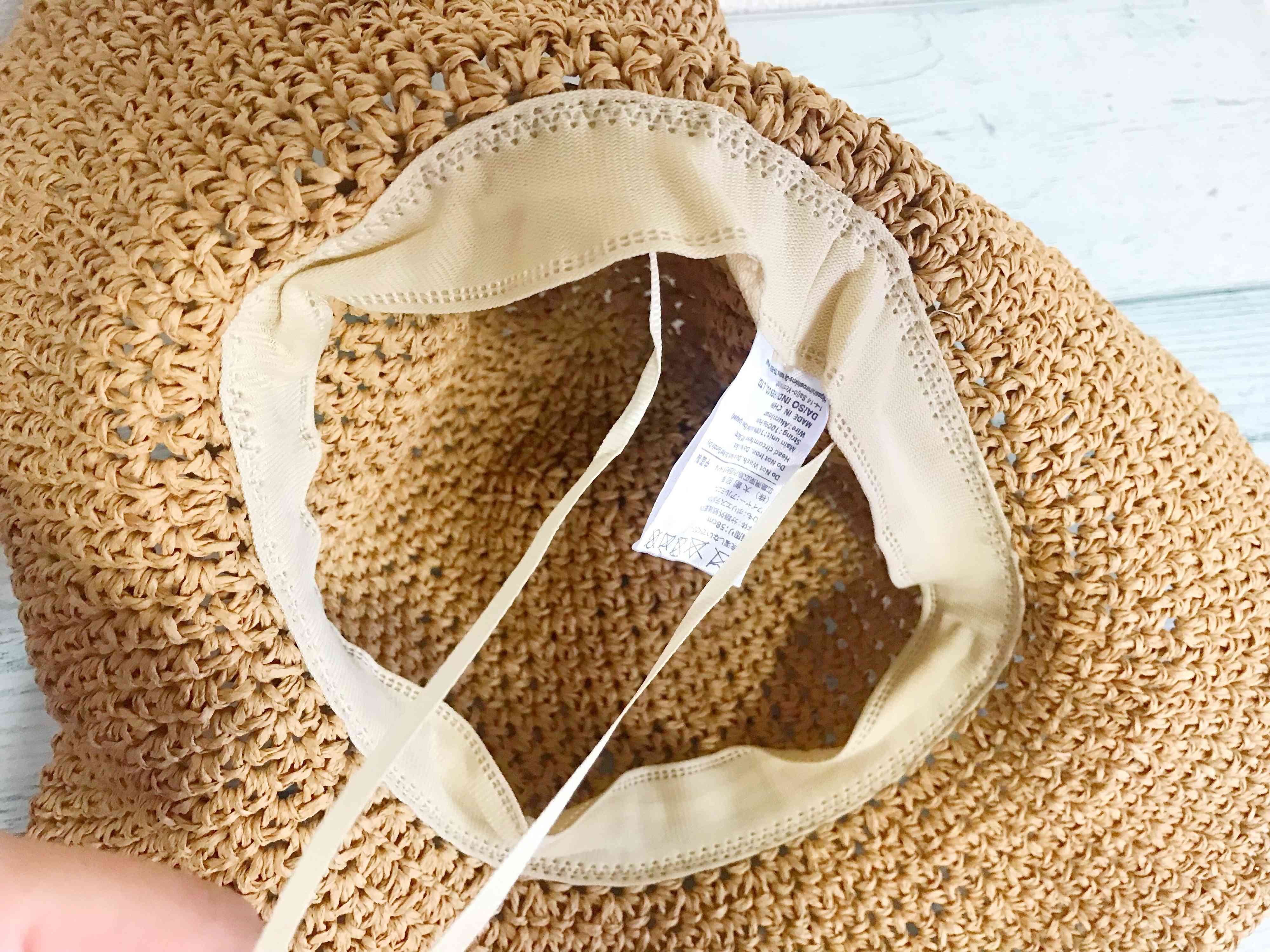 一つひとつ手編みなのにワンコインプライスで購入できるのはDAISOだからこそですよね。つばの部分はワイヤーで形も多少変形できるので、日差しやファッションに合わせてかぶり方を変えられるのもおすすめポイントです。