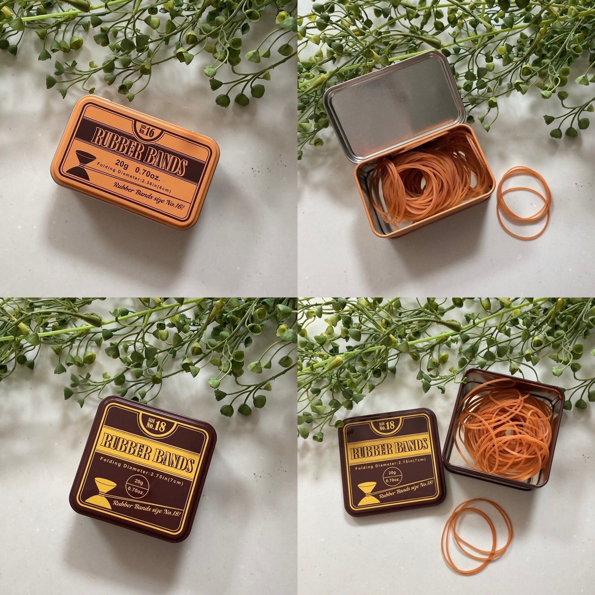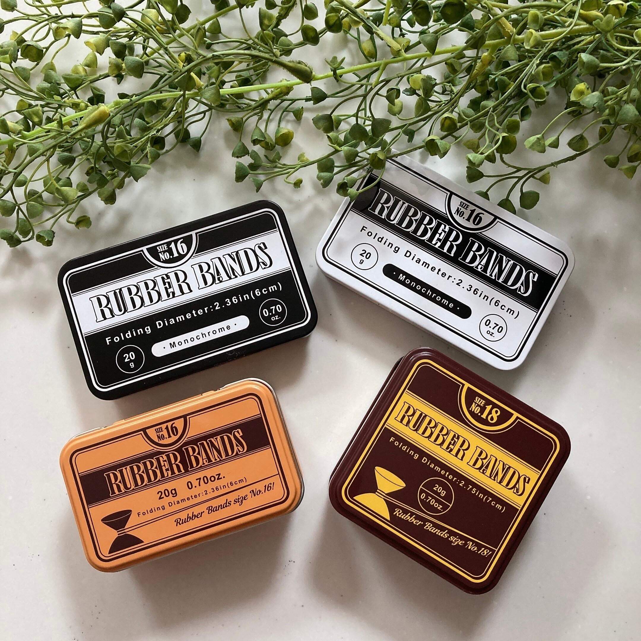 まさか中に輪ゴムが入っているとは思わないおしゃれなデザインの缶。たくさんあっても困らないのでついつい集めたくなる商品です。