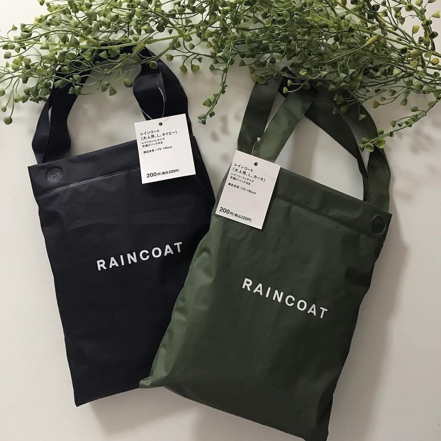 折り畳んで収納できる手提げバッグ付きのレインコート。値段を見て思わず二度見してしまったほどコスパ良しの商品です。シンプルデザインが◎。