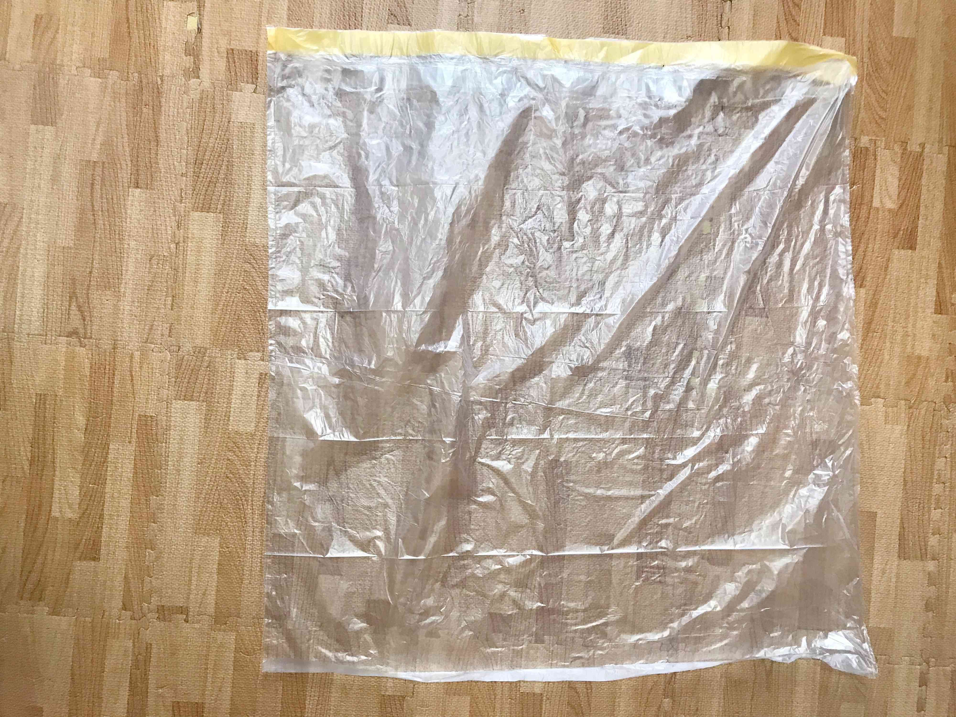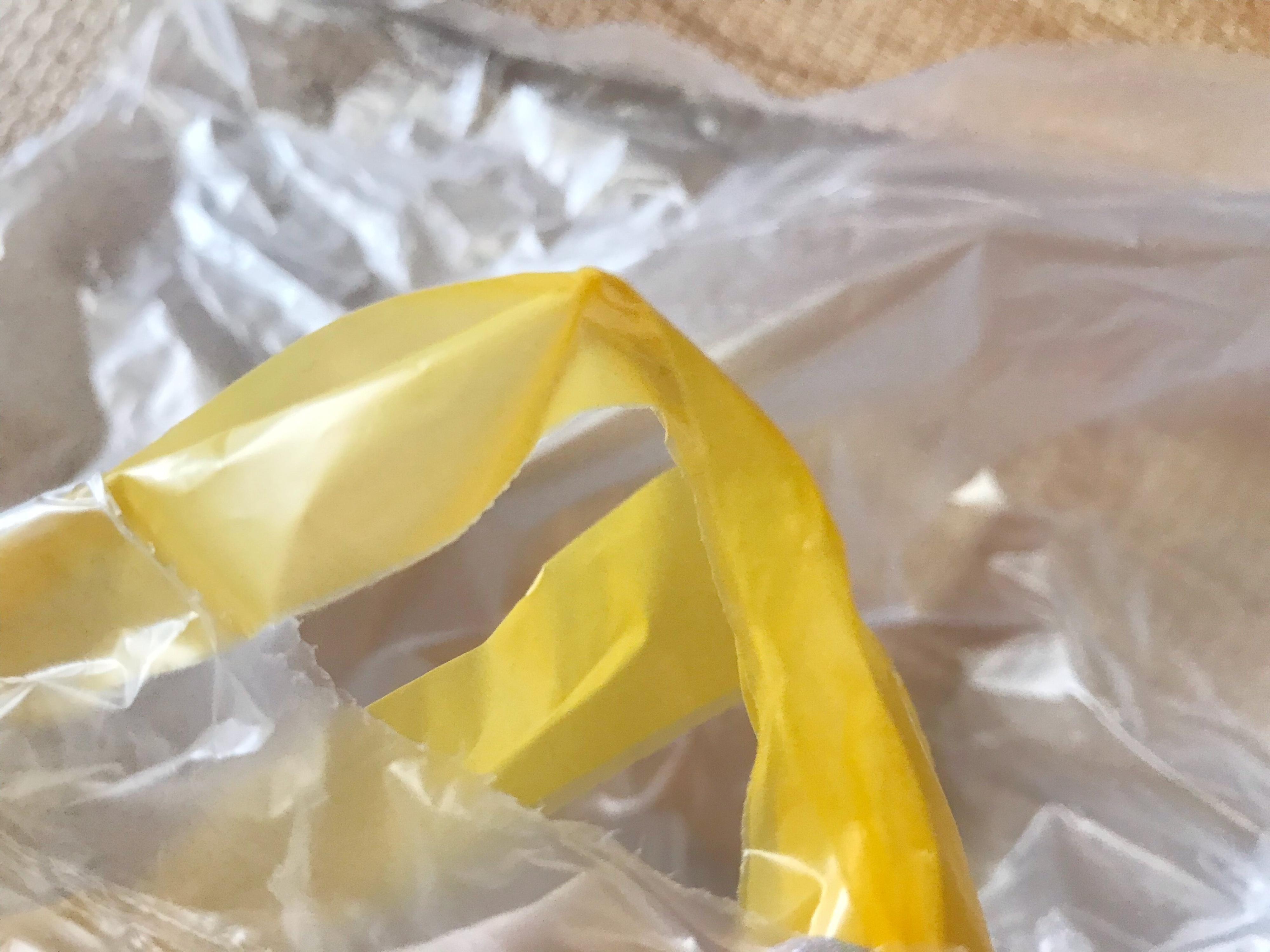ミシン目に沿って切り取るとよくある45Lのゴミ袋。カサカサした手触りのゴミ袋なので袋を開けやすいのもうれしいポイントです。なんといってもこのひも付ゴミ袋の一番の魅力は袋の口の部分にある黄色のひもです。