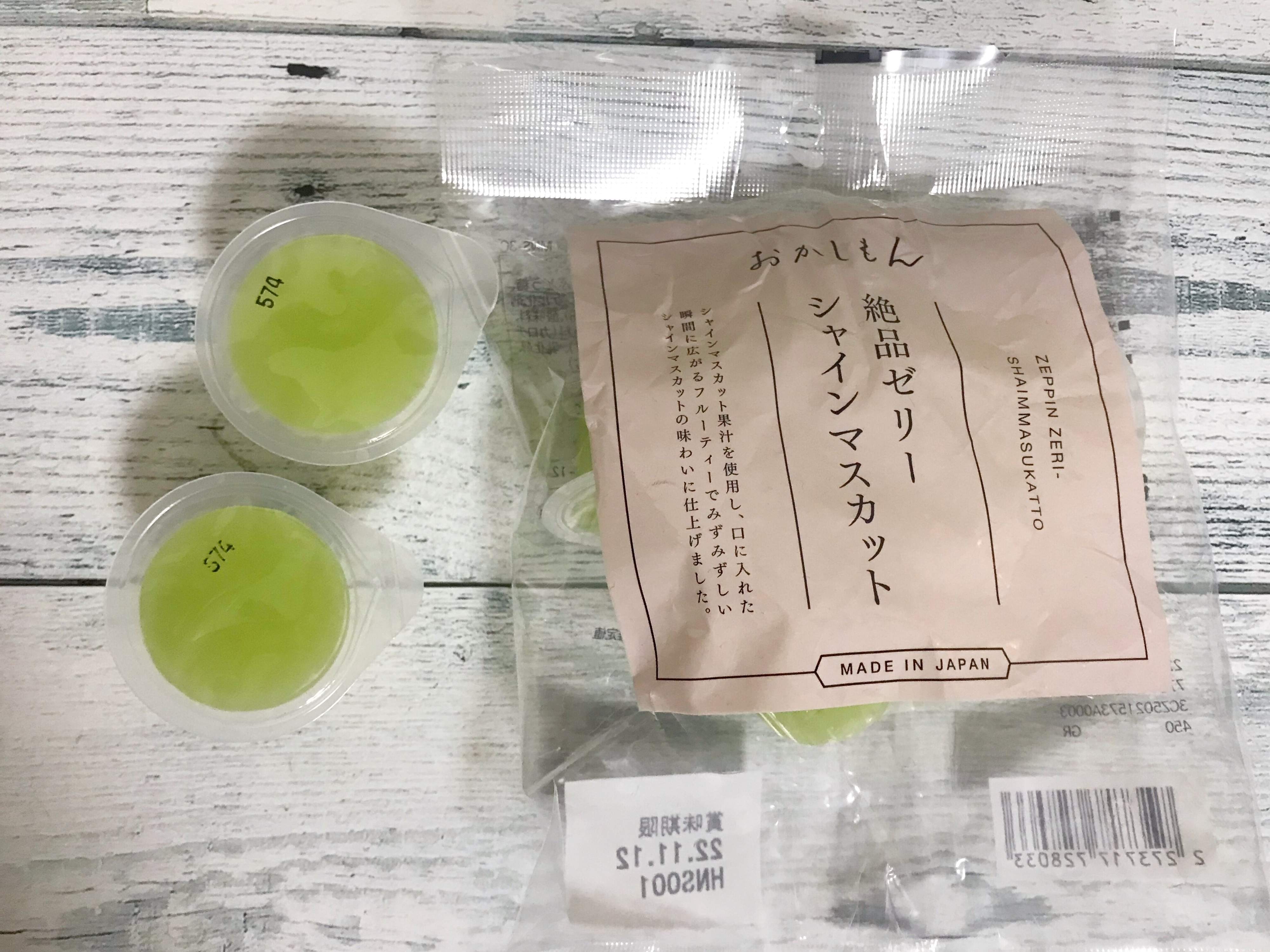 マスカット味のゼリーというだけでも珍しいのですが、シャインマスカットのフルーティーな味わいを手軽に楽しめるのは3COINS+plusだからこそですね。