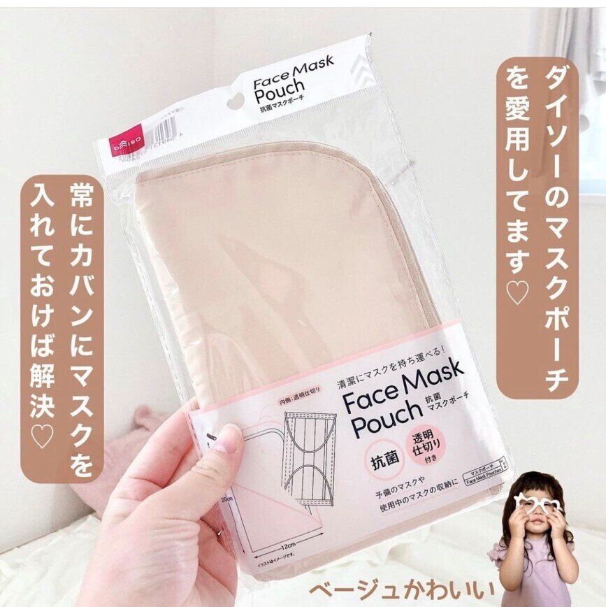 今やもう外出時は必需品となったマスク。家に置いてきてしまった!紐が切れてしまった!などトラブルに見舞われた方も多いのではないでしょうか?ダイソー「抗菌マスクポーチ」(110円)を常にカバンに忍ばせておけば、そんな心配はいりません。