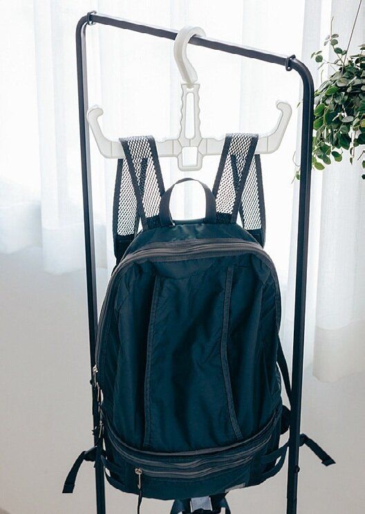 リュックの肩ひもをバーに掛けて支える形状で型崩れしにくく、360度回転のフックでどの向きでも使えるのが人気のポイント。ランドセル掛けとして利用する人も増えています。