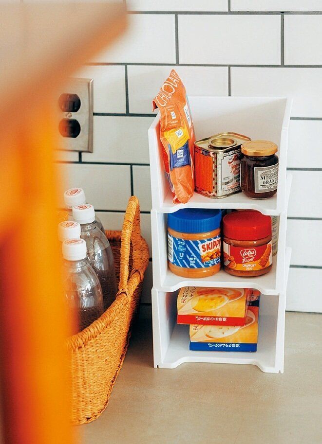 商品名のとおり、積み重ねて使うことで用途が広がるのが人気に!幅約18cmと小ぶりなので、瓶詰などの食品やスキンケア用品など、ちょっとした小物の整理に最適です。