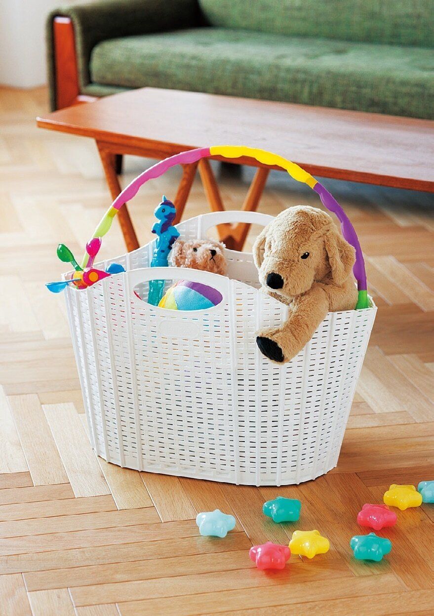 洗濯物がたっぷり入り(約38L)、使わないときは折りたたんで超スリム(3cm)になるので場所を取りません。洗濯物以外に、おもちゃの片づけや買い物のときに活用する人も!