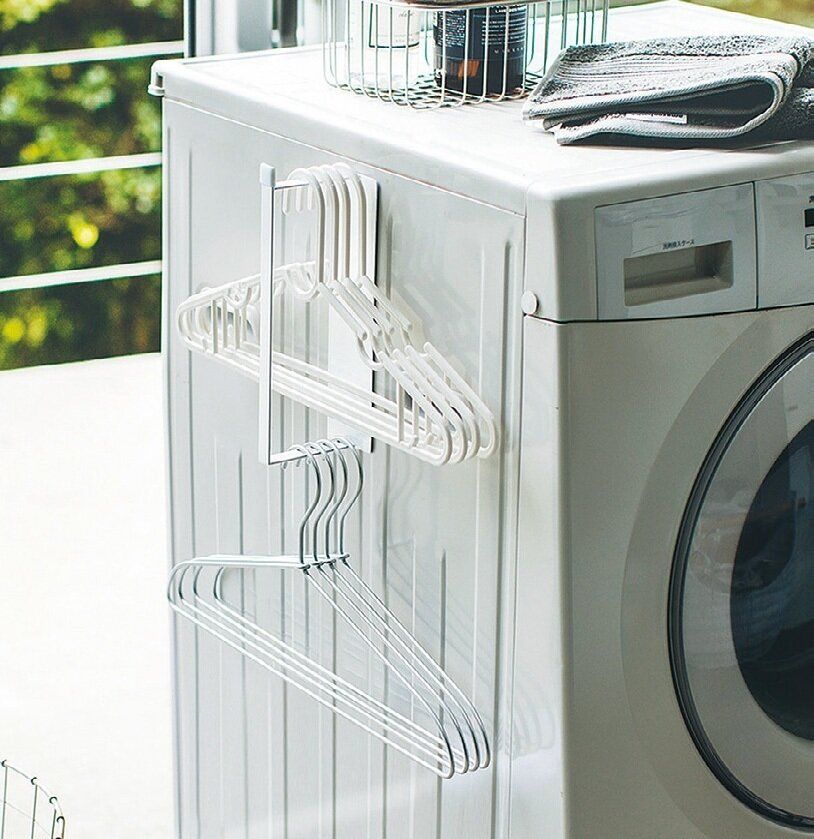 強力マグネットで洗濯機にくっつけるだけで、ごちゃつくハンガーをスッキリ収納。タオルやバスグッズなどを掛けることもでき、狭い洗面所を有効活用したい人に大好評です。