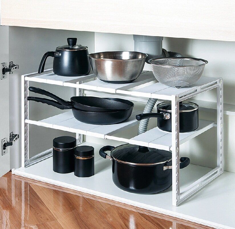 細い棚板の調整で排水管をよけ、幅46~74cmで伸縮できるので、どんなシンク下にもフィット!「収納量が増えた」「使い勝手がよくなった」と喜びの声が多く寄せられています。