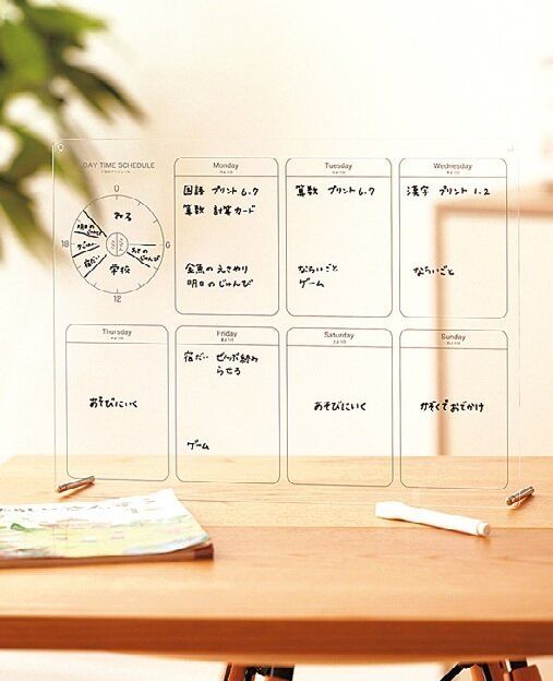 タイムスケジュールと、曜日ごとの予定などを記入できるボード。マグネット付きで、貼って使ってもOK。