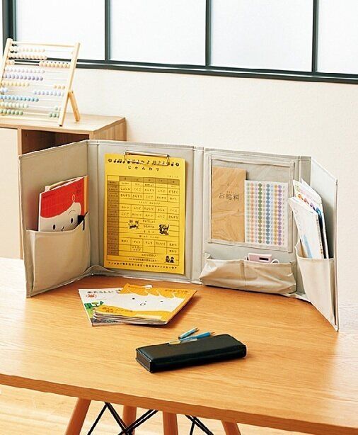 ポケットやバインダー付きで、プリントやノート、文房具などをひとまとめに。移動や片づけもラクラク~。