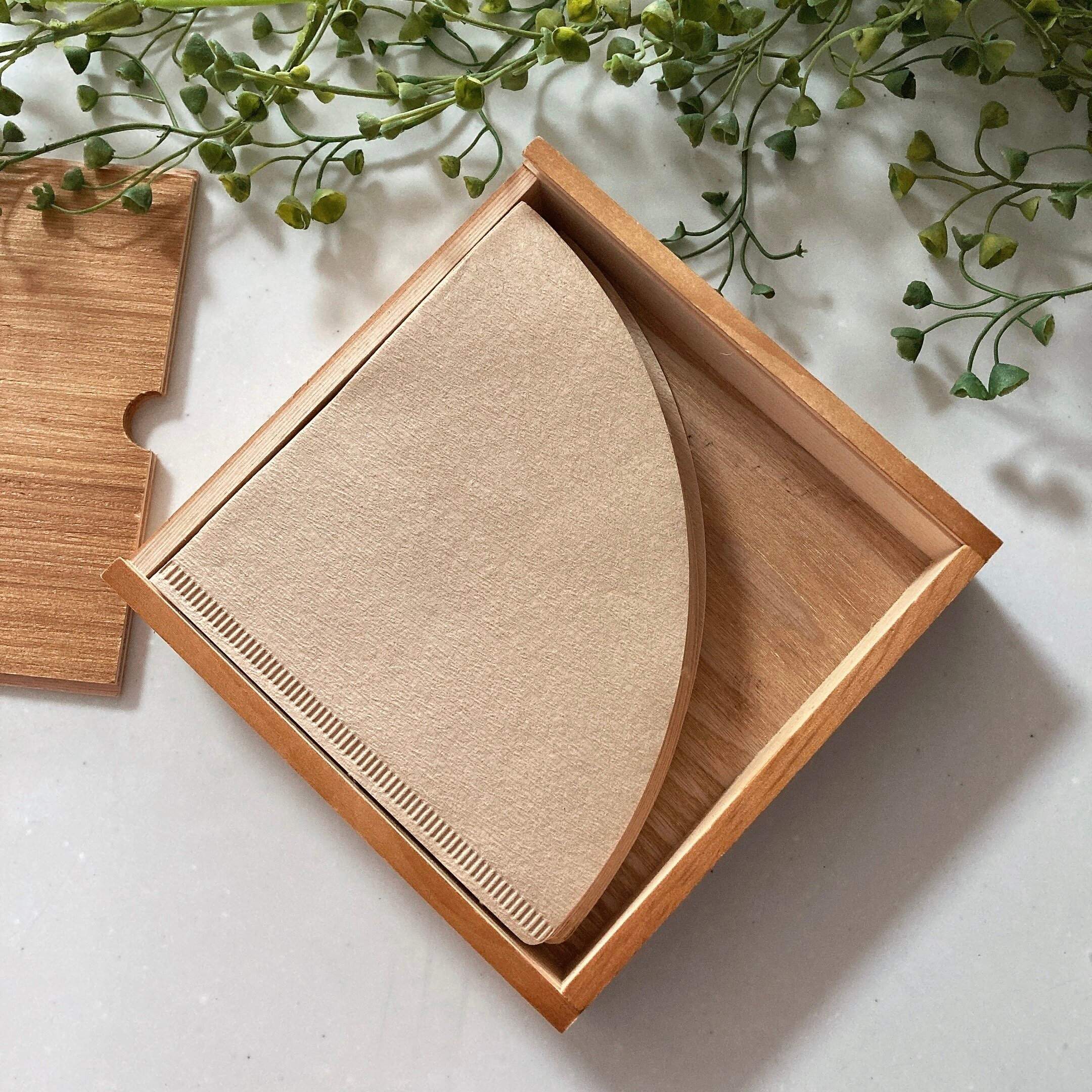 木製のシンプルなコーヒーフィルターケース