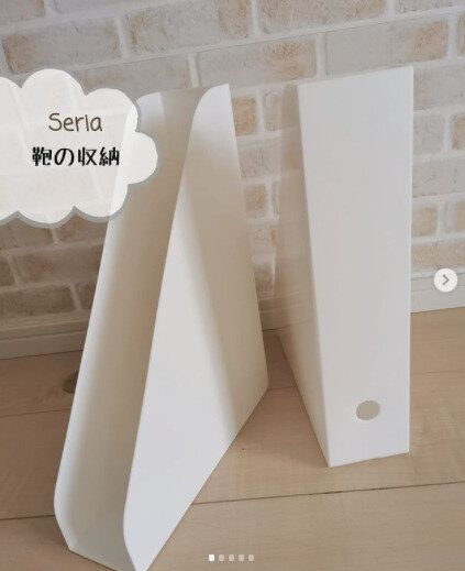 靴収納もセリアのファイルボックスを使えばすっきりまとめることができます。少しスリムなサイズですが、靴を入れるにはぴったり!靴箱もきれいに片づきそうですね。