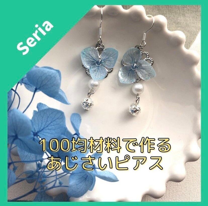 夏にぴったりのアジサイデザインのピアスも100均材料でつくことができます。花弁の裏表にレジンを塗布して、あとは好きなラメなどを散らせばお花は完成します。ぜひ真似したいアイデアですね。