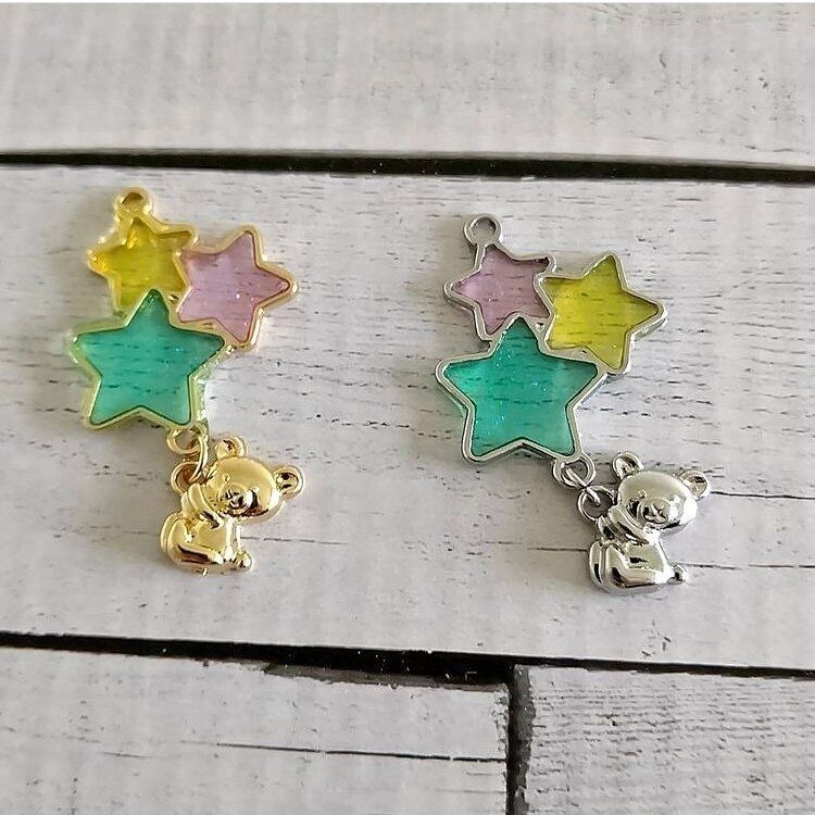 透明感のあってかわいいこちらは、セリアのレジンでの製作です。クマのチャームもポイントですね。