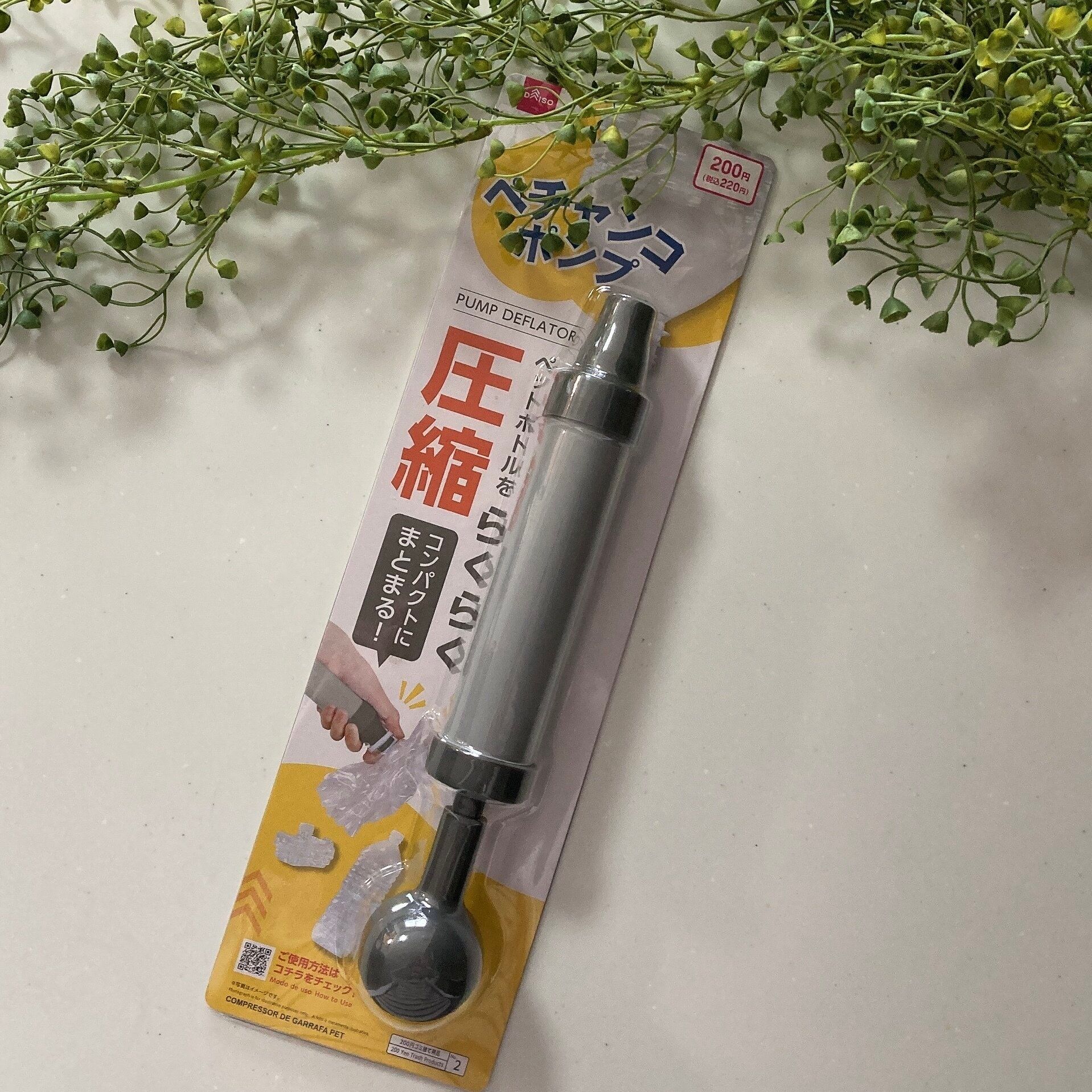 手で潰すには力がいり大変ですが、このペチャンコポンプを使えば簡単に圧縮できるのでおすすめです。