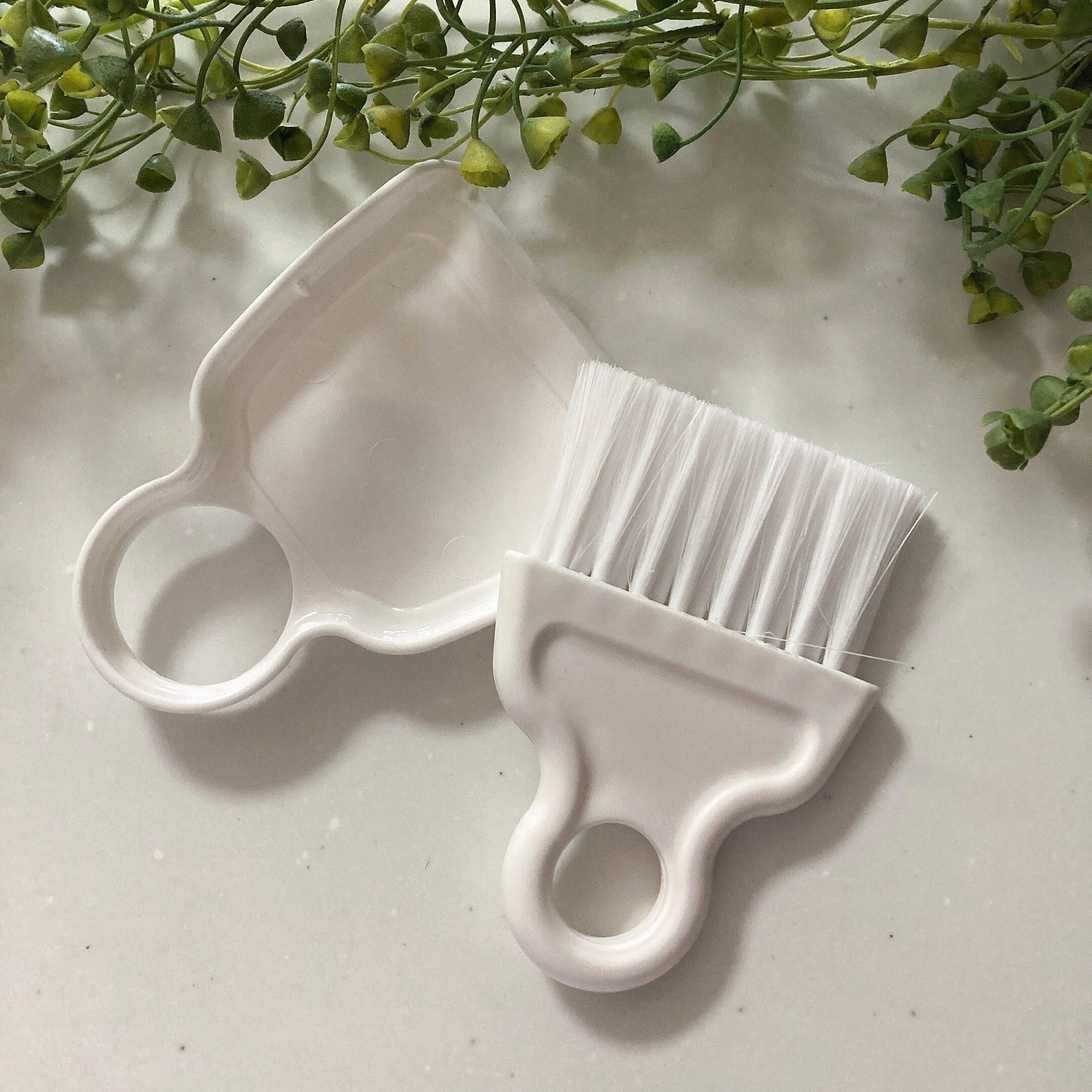真っ白でシンプルなミニサイズのほうきとちりとりのセット。