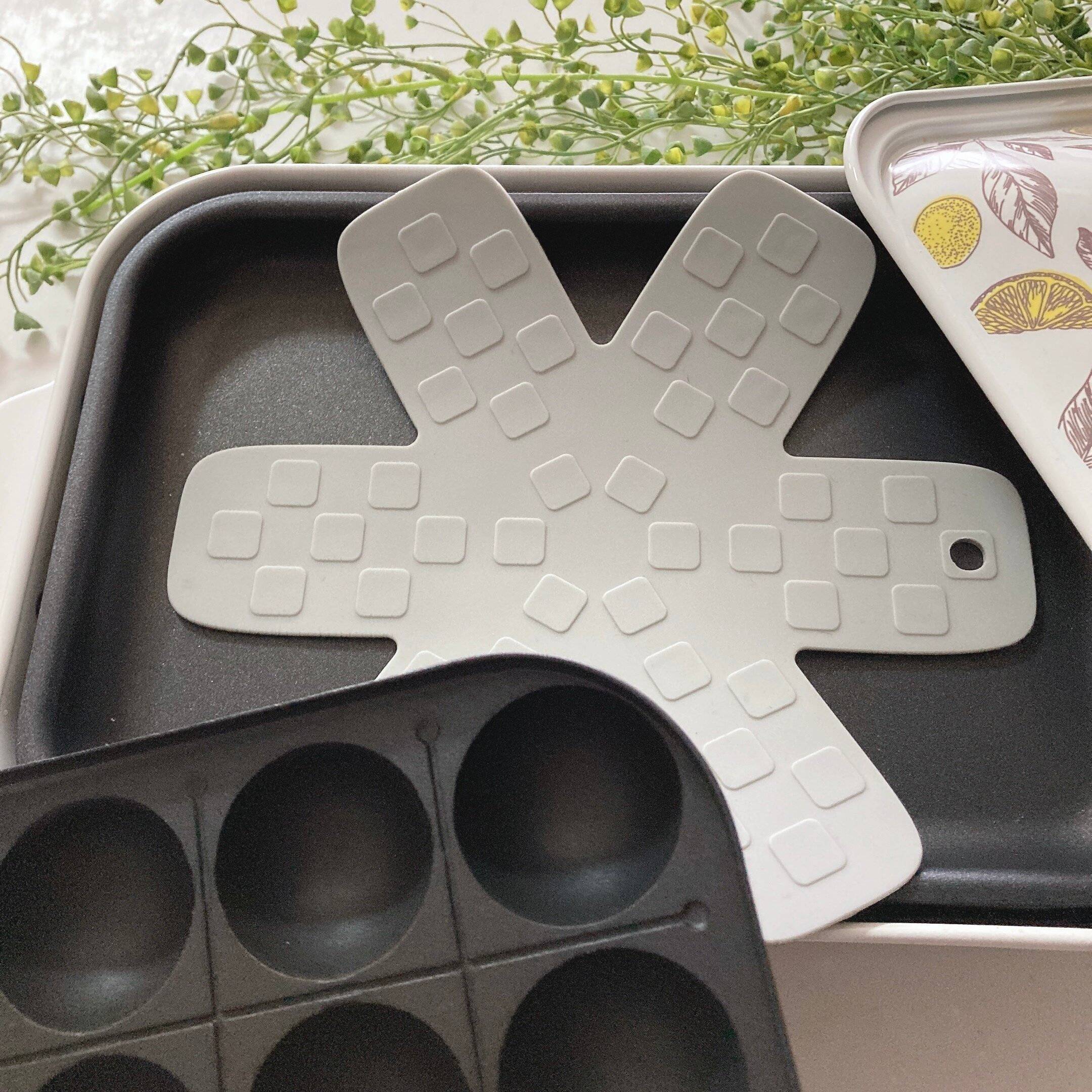 平面プレートとたこ焼きプレートを重ねて収納していたコンパクトプレートにも使っています。