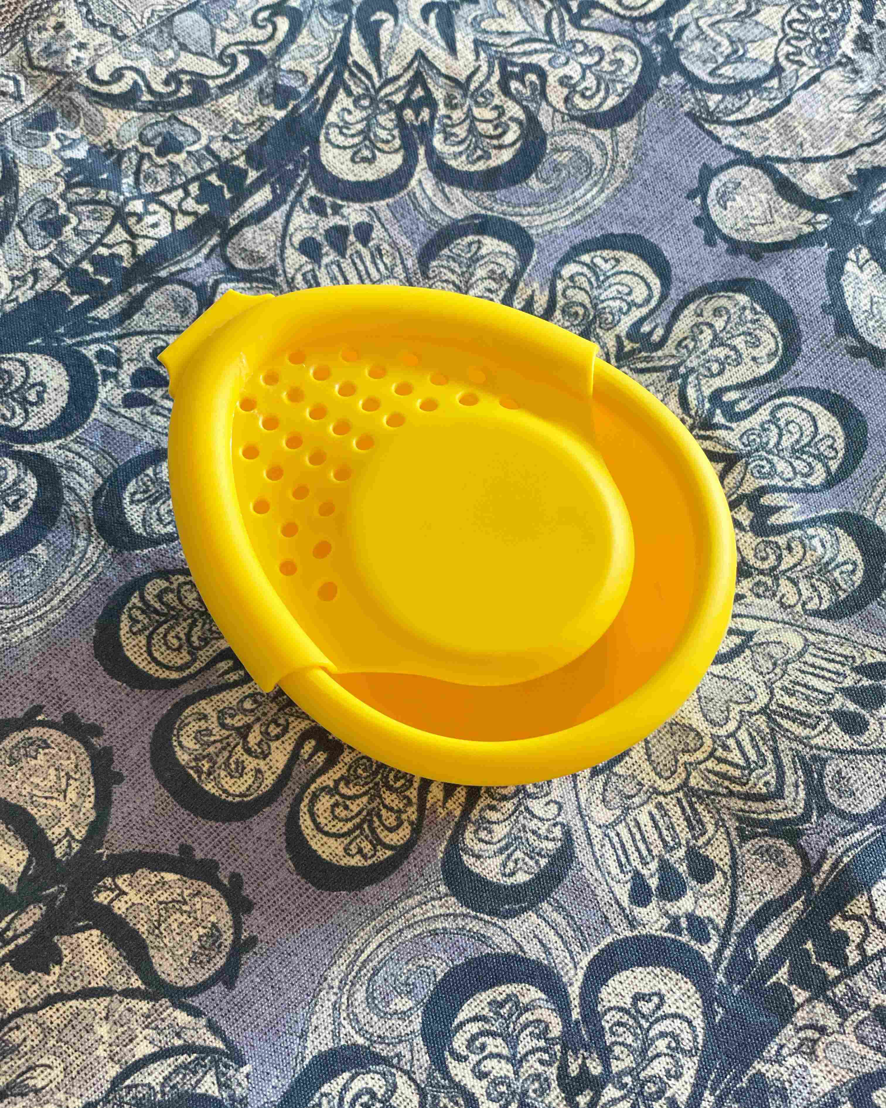 プラスチックの黄色い容器です。そんなに大きくないので、邪魔にならず、いい仕事をしてくれる便利な商品です。
