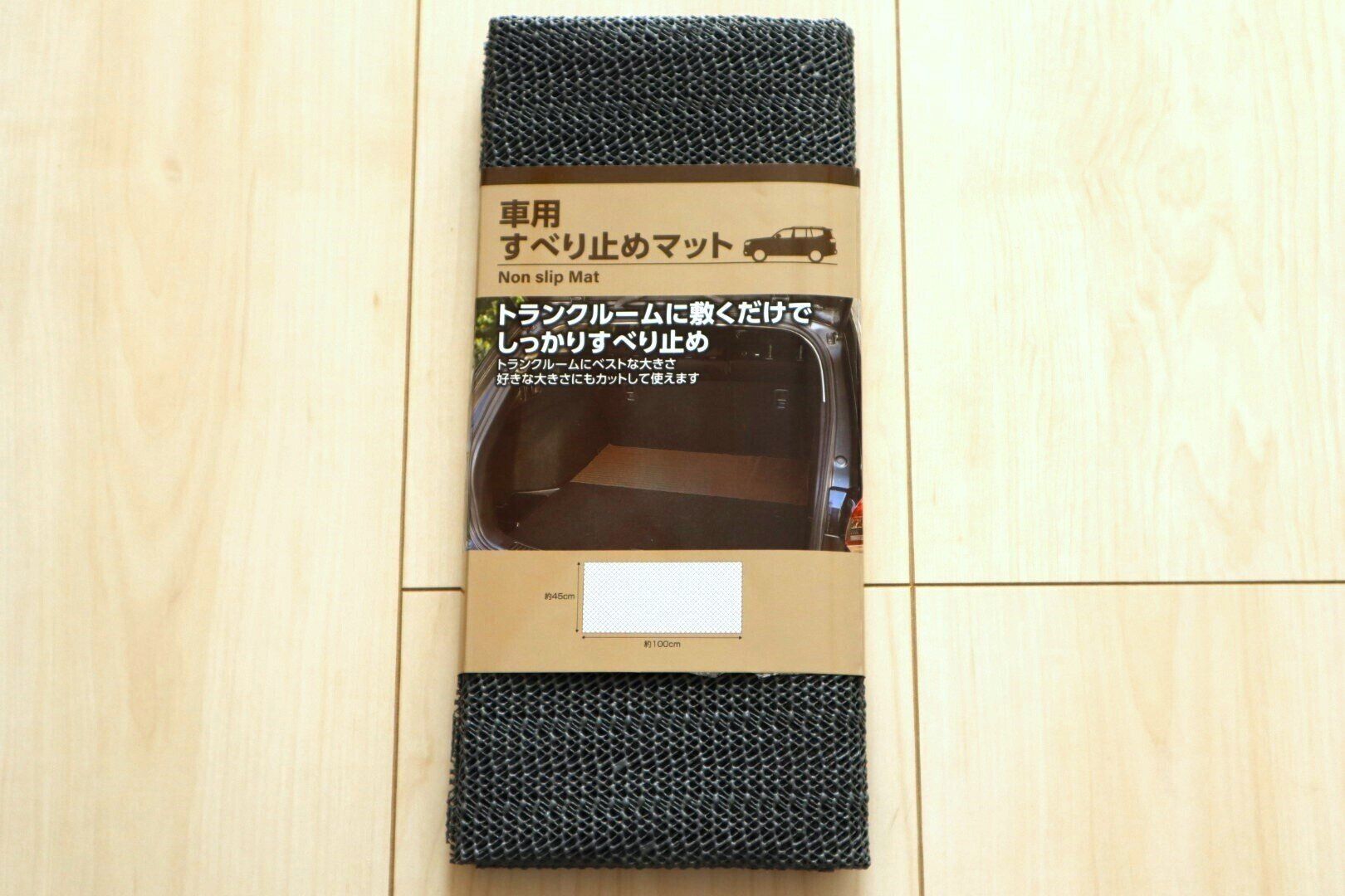 このシートをさらに使いやすくするには、同じくセリアで売られている『車用すべり止めマット』(110円)を購入することをオススメします。
