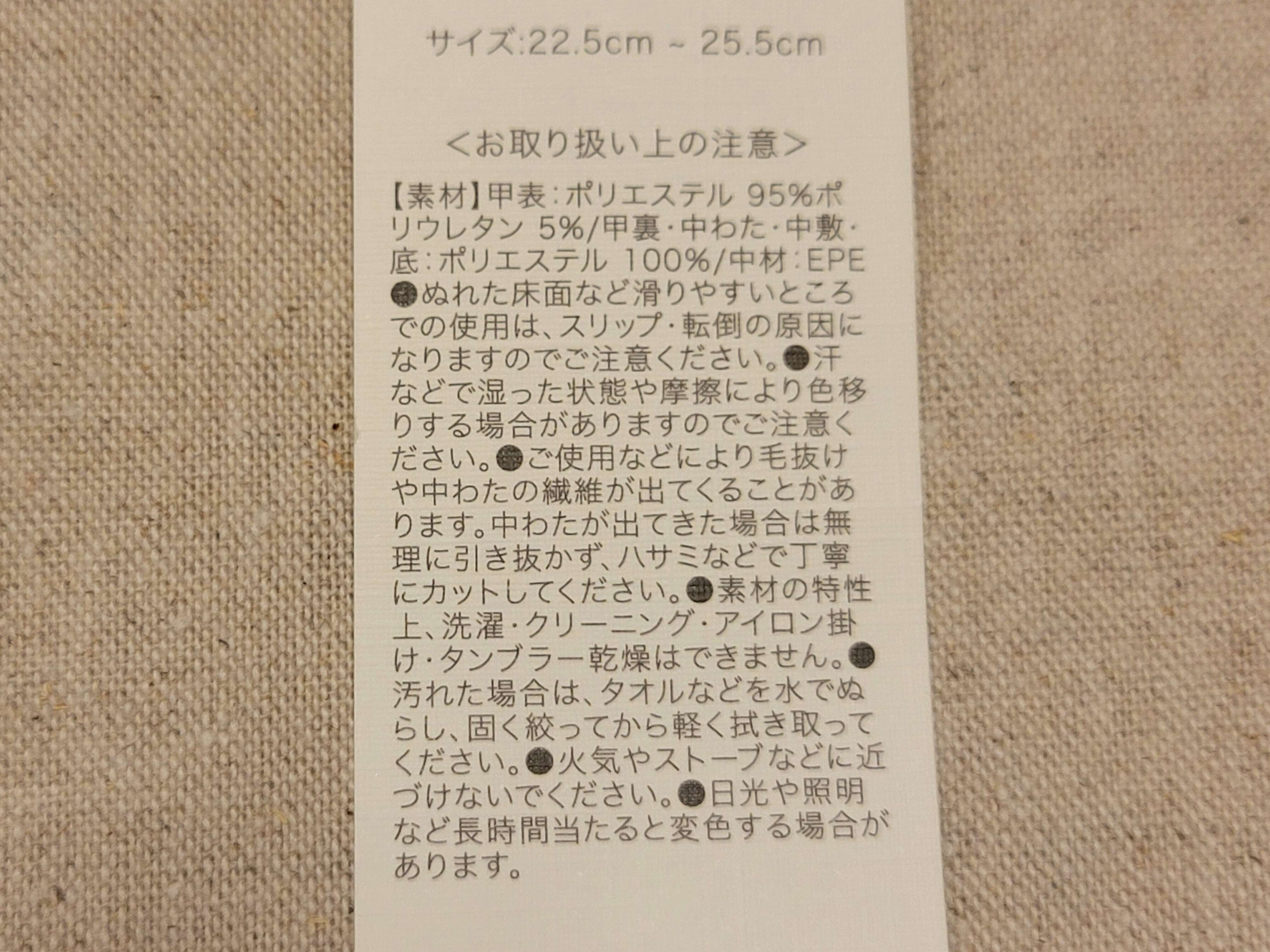 昨年このスリッパの評判を聞いて購入したいと思った時には売り切れており買いそびれてしまったので、「今年こそ!」と早めに店舗へ行き商品を手に取ってみました。昨年は330円と聞いていましたが、今年は550円に値上がりしていました。物価高騰の波は、こちらにもきているようです。