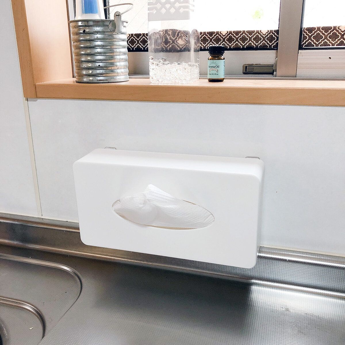 使っているのはセリアのティッシュケース。