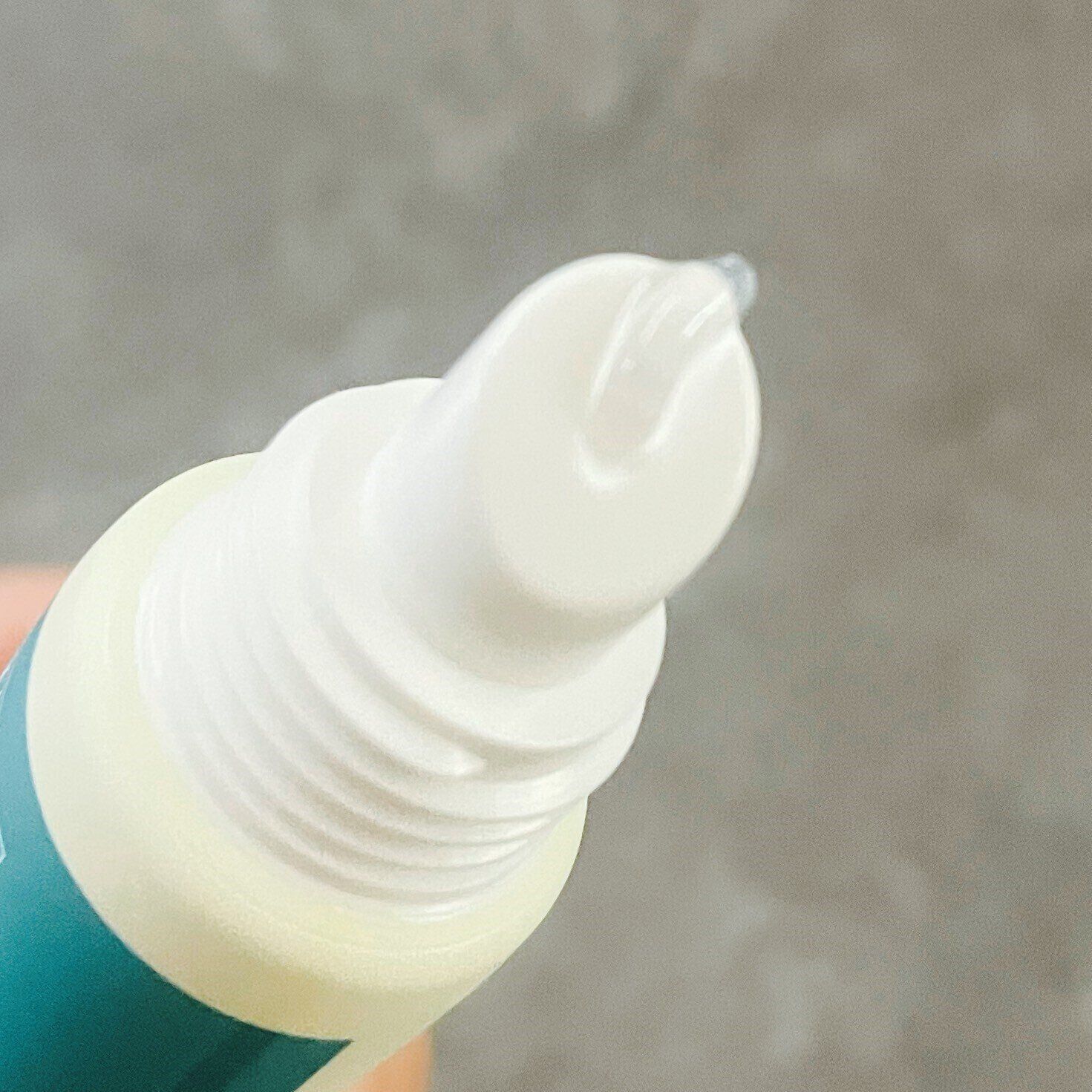 チューブタイプのリップジェルなので、指に取り出して塗布するのかと思ったら、キャップを開けると先端が斜め仕様になっていて、真ん中の穴からリップジェルが出てくる仕組み。