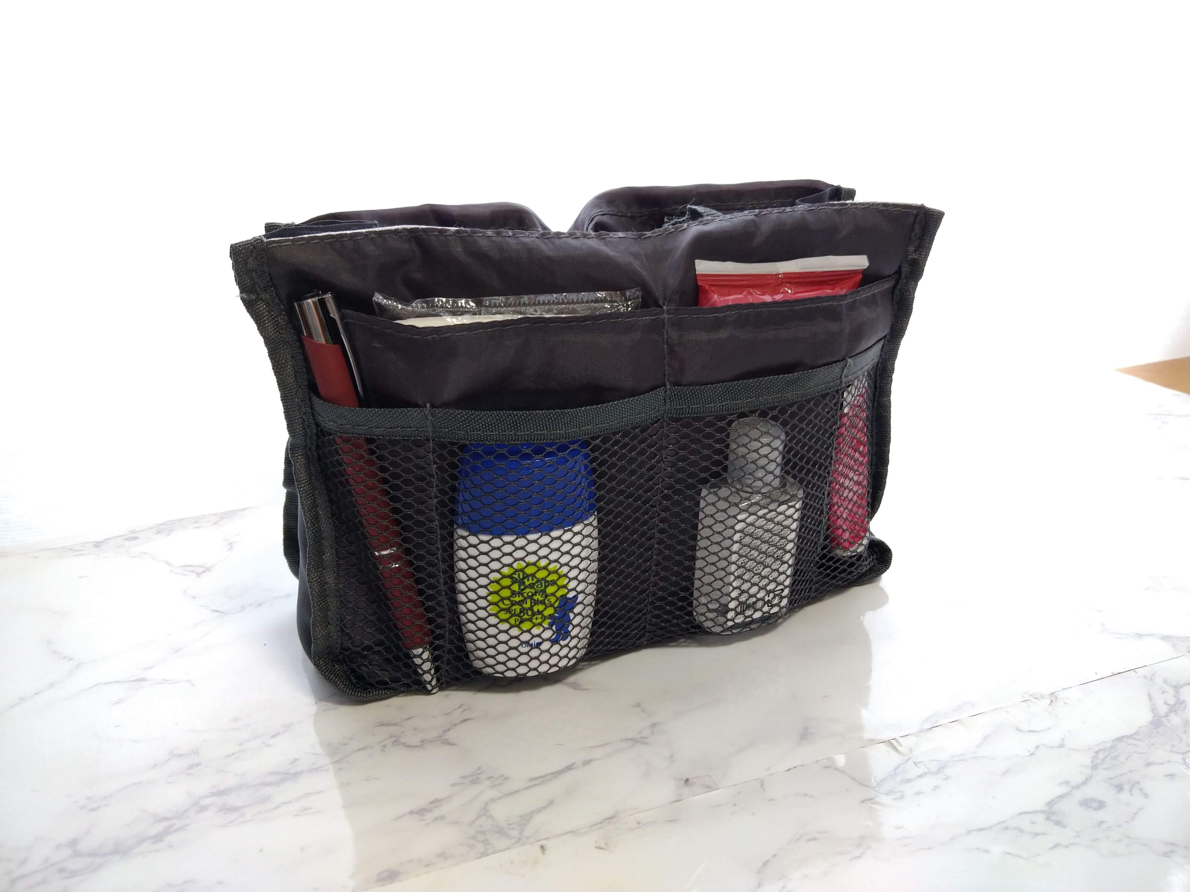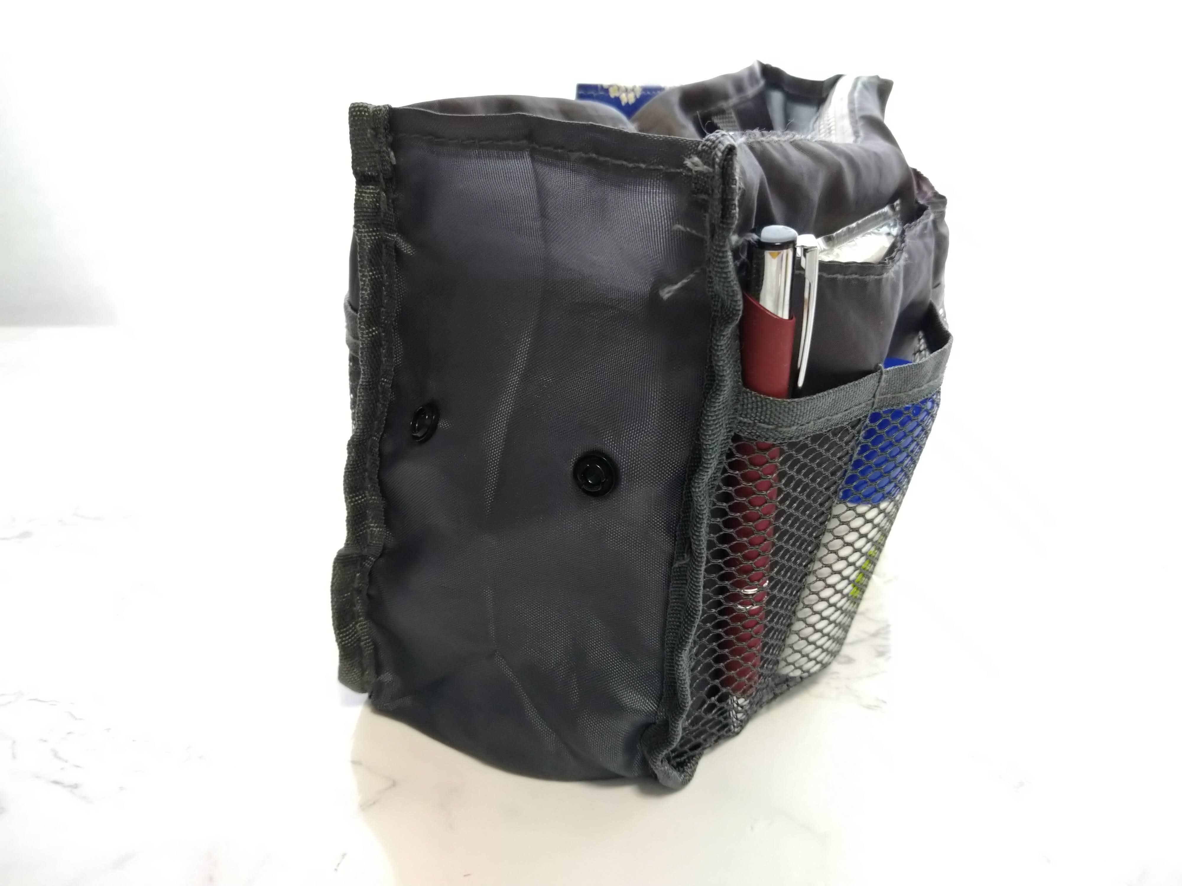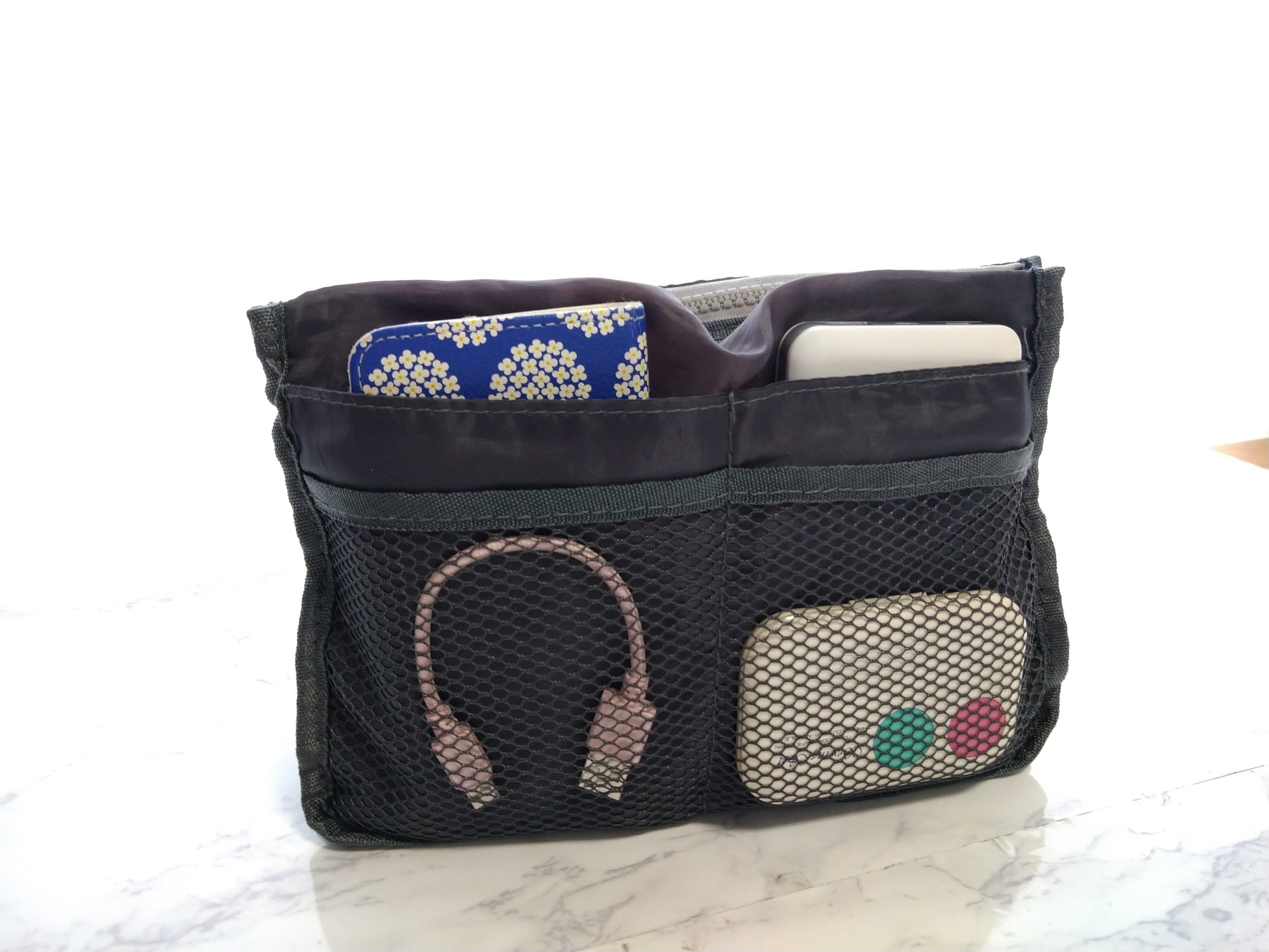 このバッグインバッグには、両サイドにさまざまなサイズのポケットがついています。