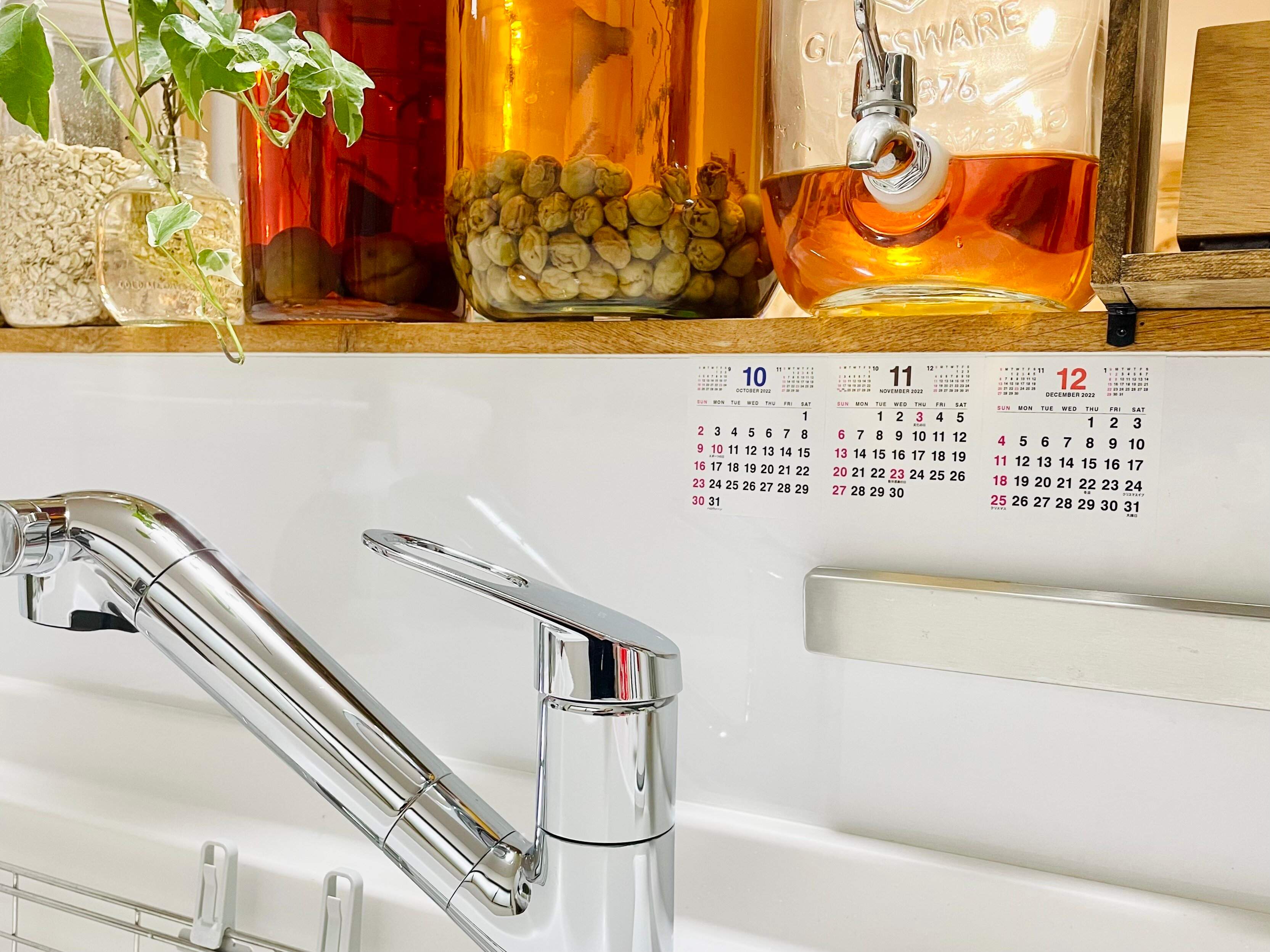 わが家では、キッチンシンクの正面の壁に貼っています。ちょうど、洗い物をする時に目に入る位置。