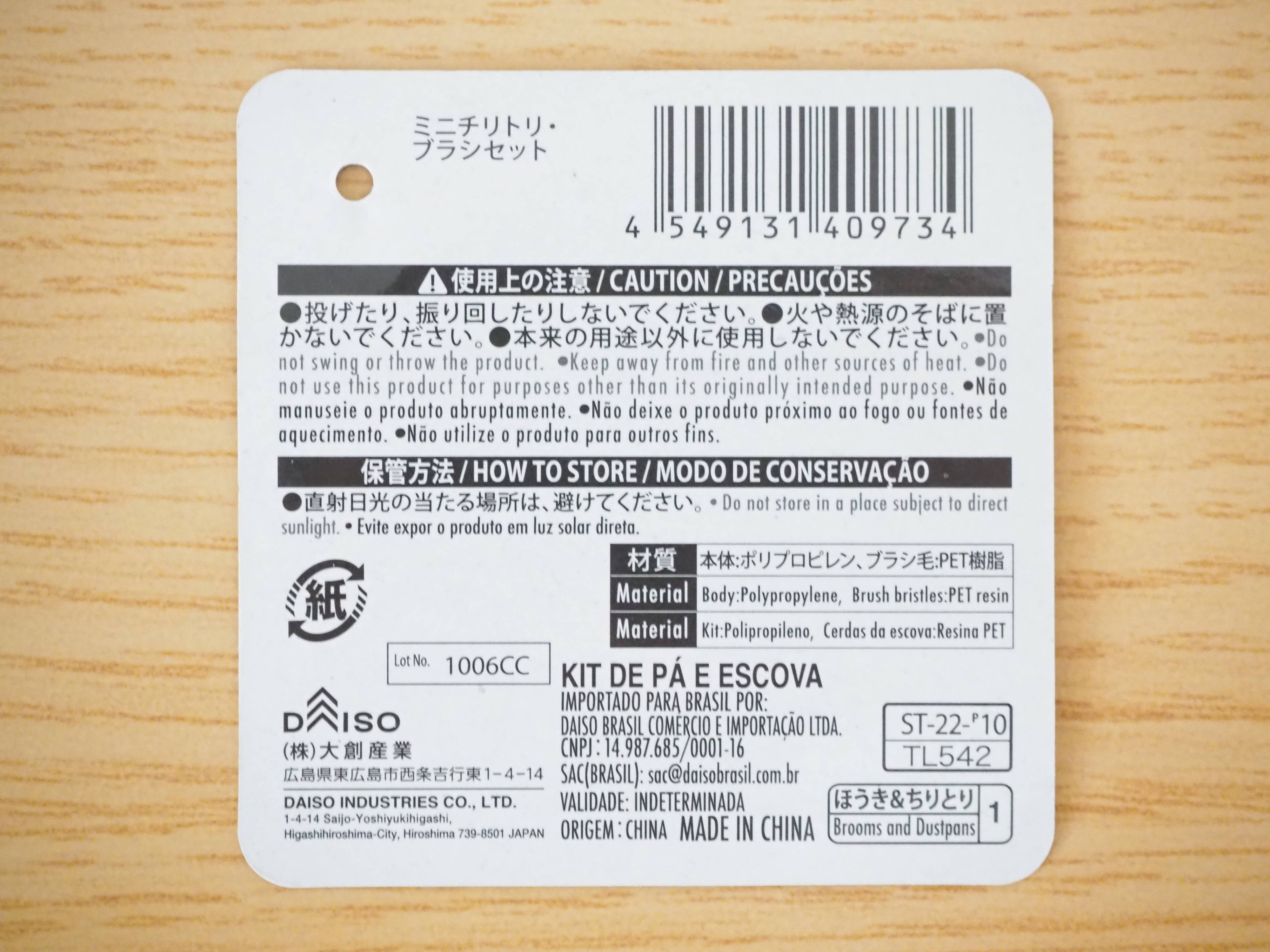 こちらが「チリトリブラシセット」で、価格は110円。掃除用品を扱うコーナーで見つけることができました。