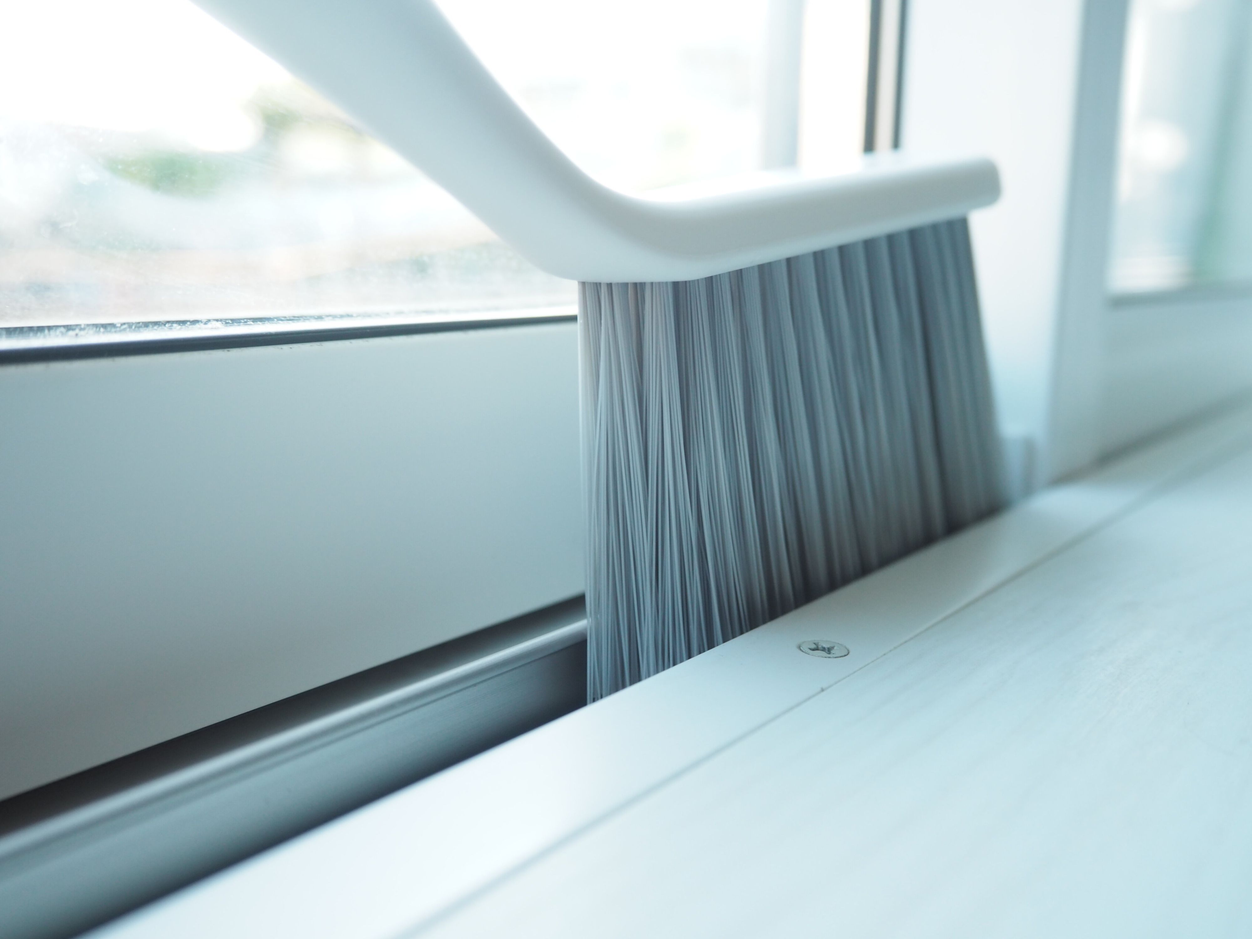 ブラシ毛の幅は広がった状態で約1.5cm。ちょうど窓のサッシにはまる幅です。