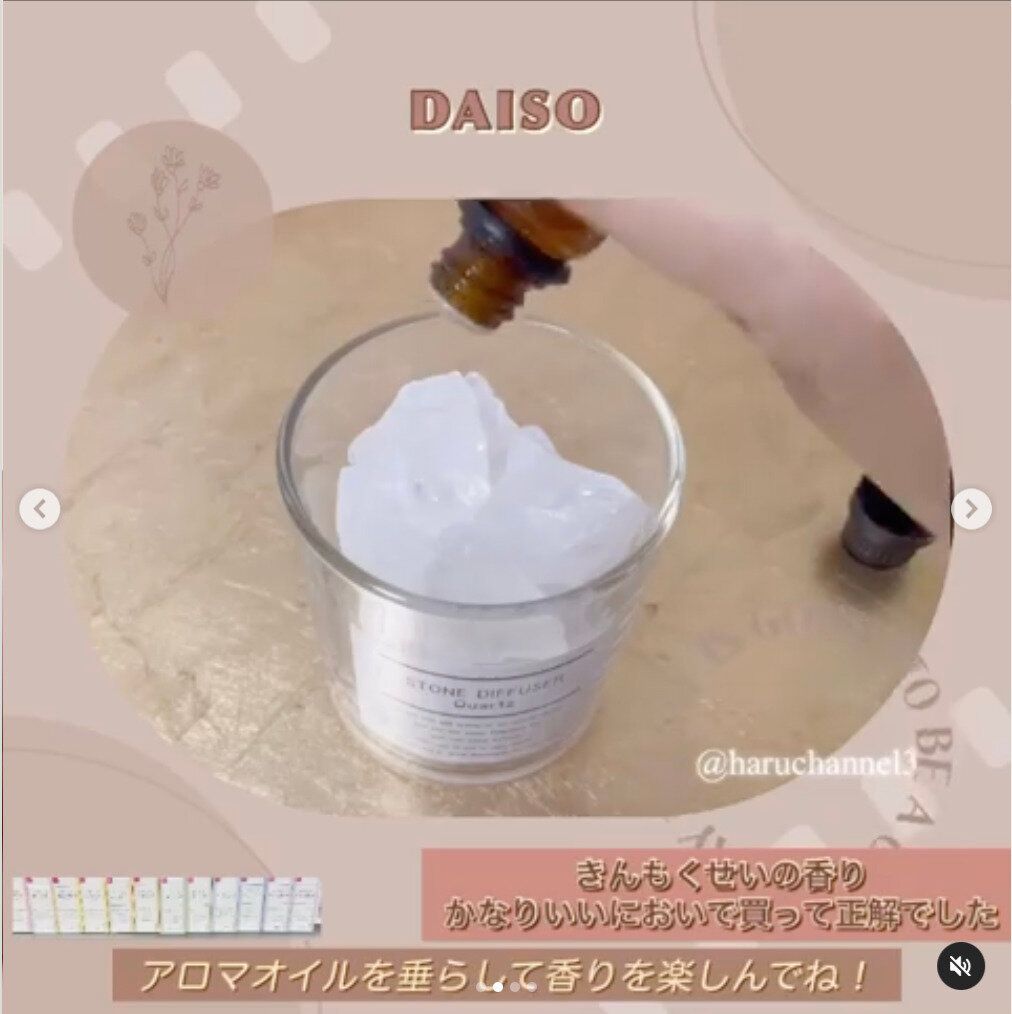 このまま飾っても素敵ですが、お好みのアロマオイルを垂らすと、優しく香りが広がります。価格は330円です。