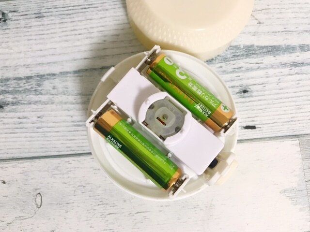 3COINSの卓上クリーナーは単三電池×2本で動きます。(電池は別売りなので別途用意が必要です。)電池式なのでどこでもすぐに使いたいときに使えるのが魅力的です。
