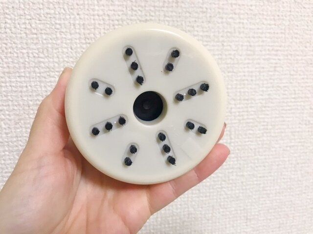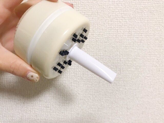 スイッチを入れると真ん中部分がごみを吸引してくれます。細かいブラシがついていて、ごみやほこりをかき出して吸引してくれるので、消しゴムのカスまみれだった学習机も簡単にきれいになりましたよ!