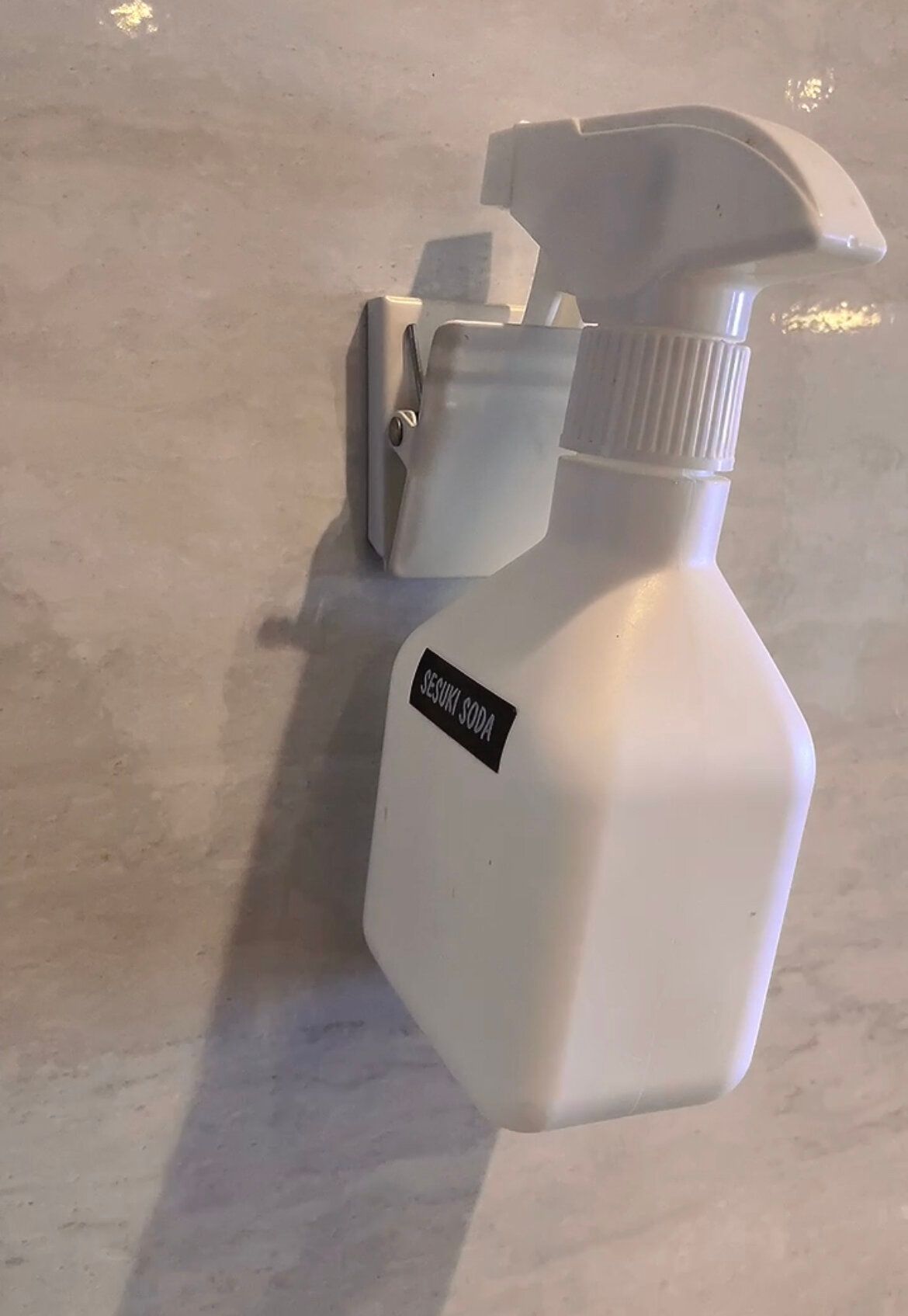 マグネットクリップにスプレーボトルを引っかければ、浮かせる収納に早変わり♪