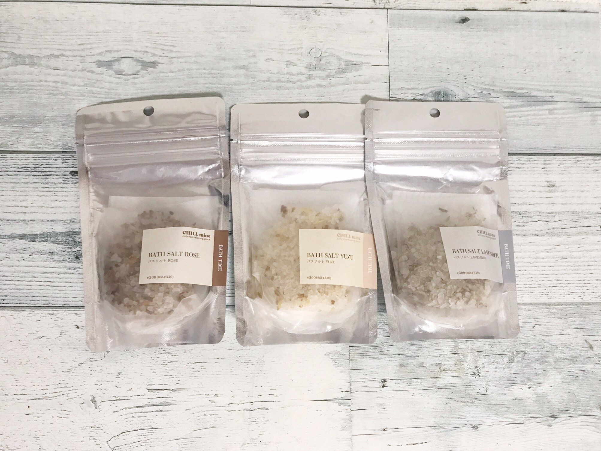 優しい香りが浴槽に広がる「バスソルト」(各330円)は、体を温めてくれるだけでなく、心もリラックスできるお気に入りのアイテム。ゆず・ローズ・ラベンダーの3つの香りが発売中。330円とコスパがいいのに高級感のあるバスタイムを楽しむことができます。寒くなってくるこれからの季節に大活躍すること、まちがいなしです。