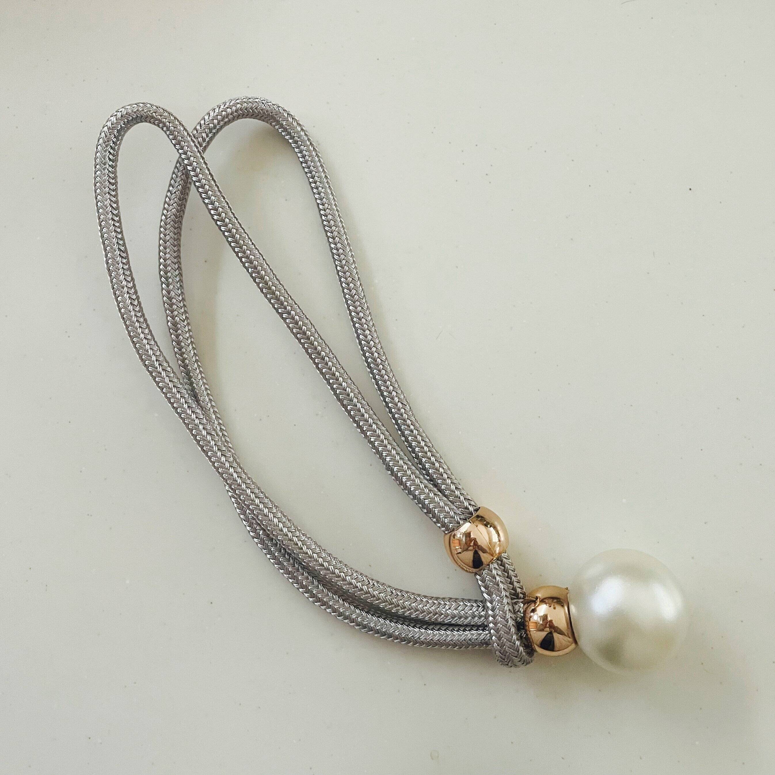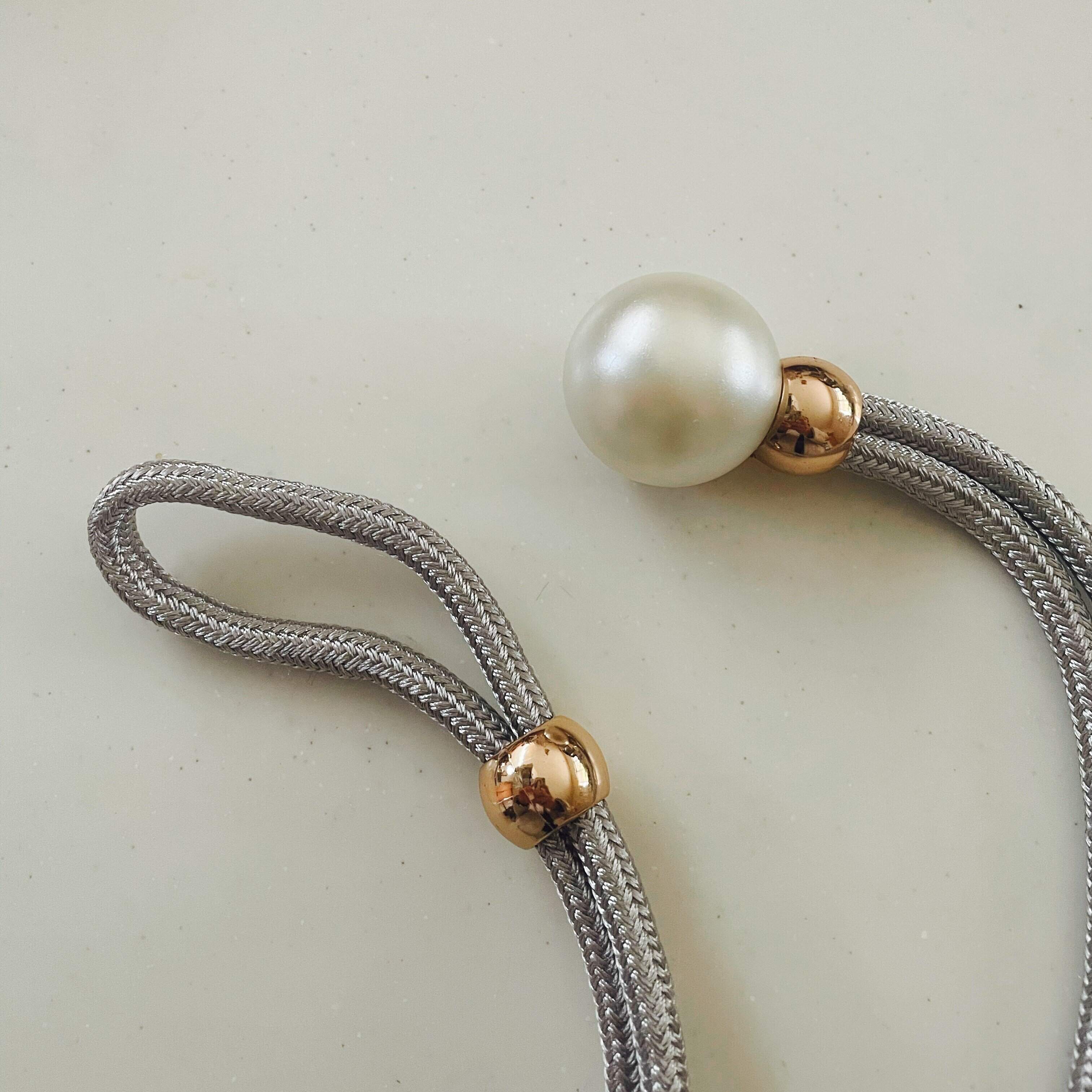 ヒモに付いたゴールドの金具をスライドさせるとヒモの輪っか部分からパールが取り出せる作り。