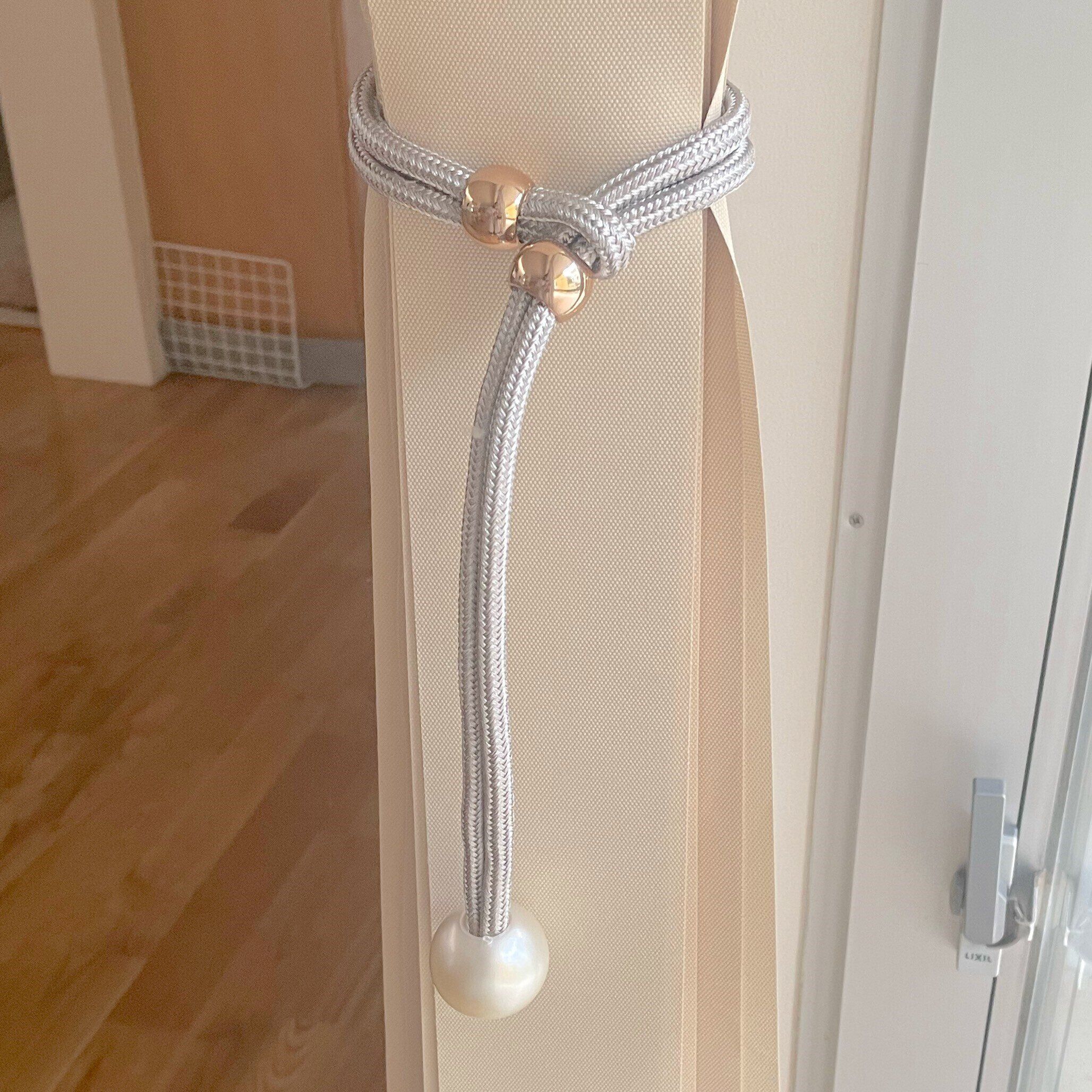 カーテンがひとまとめにできて実用的な上にパールとシルバーの紐とゴールド金具でゴージャスですよね!