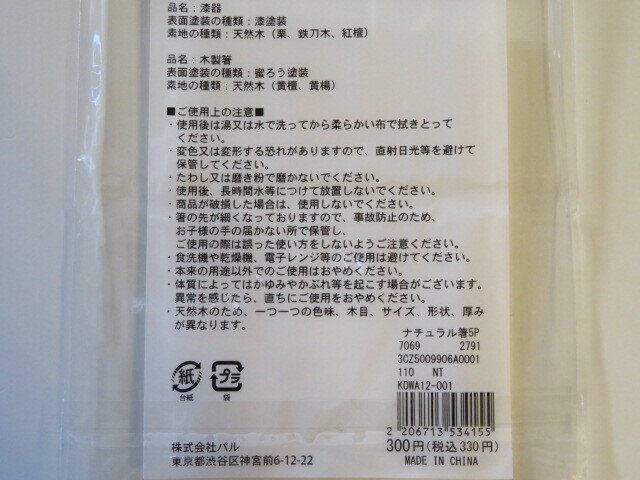 ナチュラル箸5膳セット(330円)